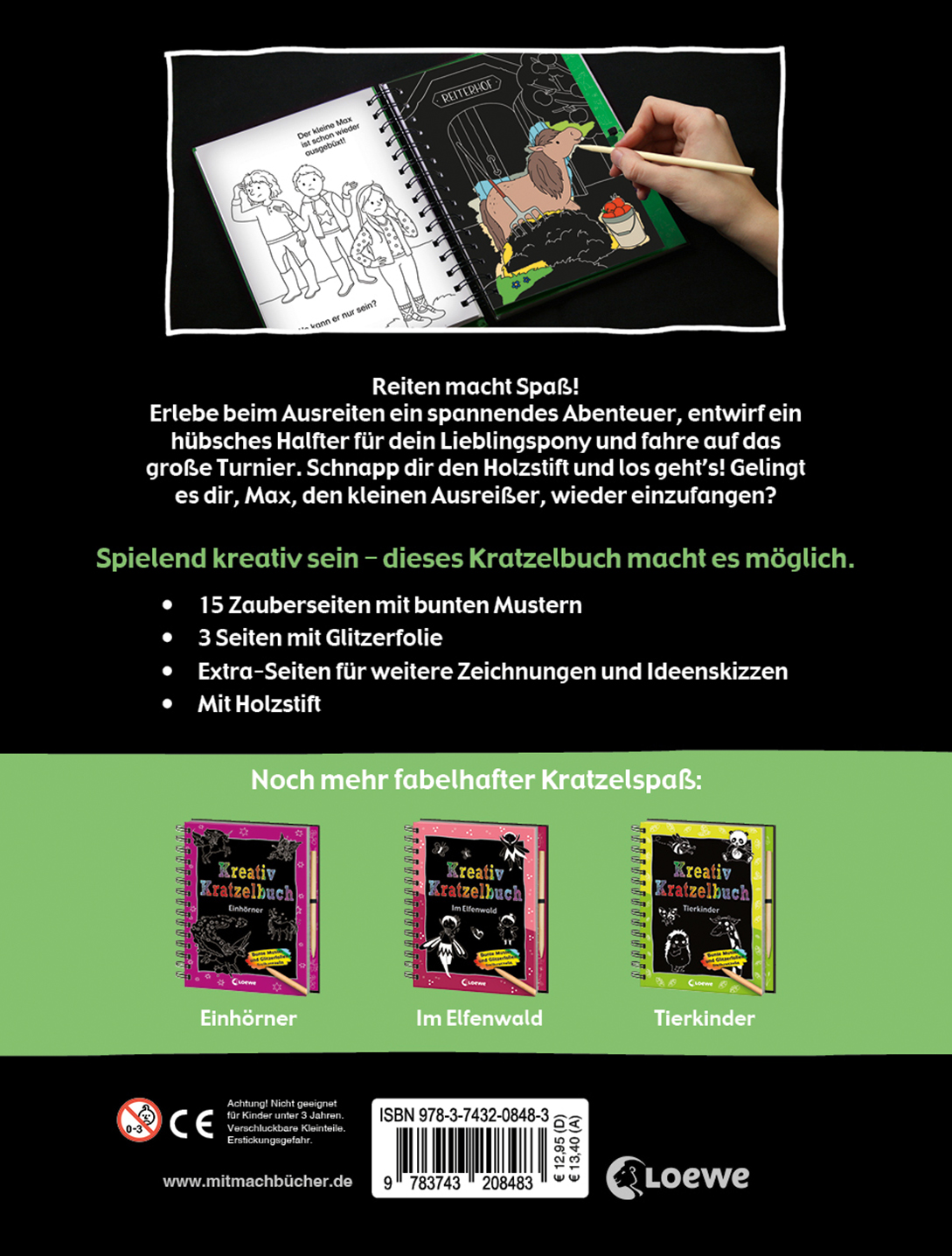 Reiten macht Spaß! Erlebe auf einem Ausritt ein spannendes Abenteuer, entwirf ein hübsches Halfter für dein Lieblingspony und fahre mit Sonnenschein auf das große Turnier. Schnapp dir den Holzstift und los geht's! Und gelingt es dir, Max, den kleinen Ausreißer, wieder einzufangen?