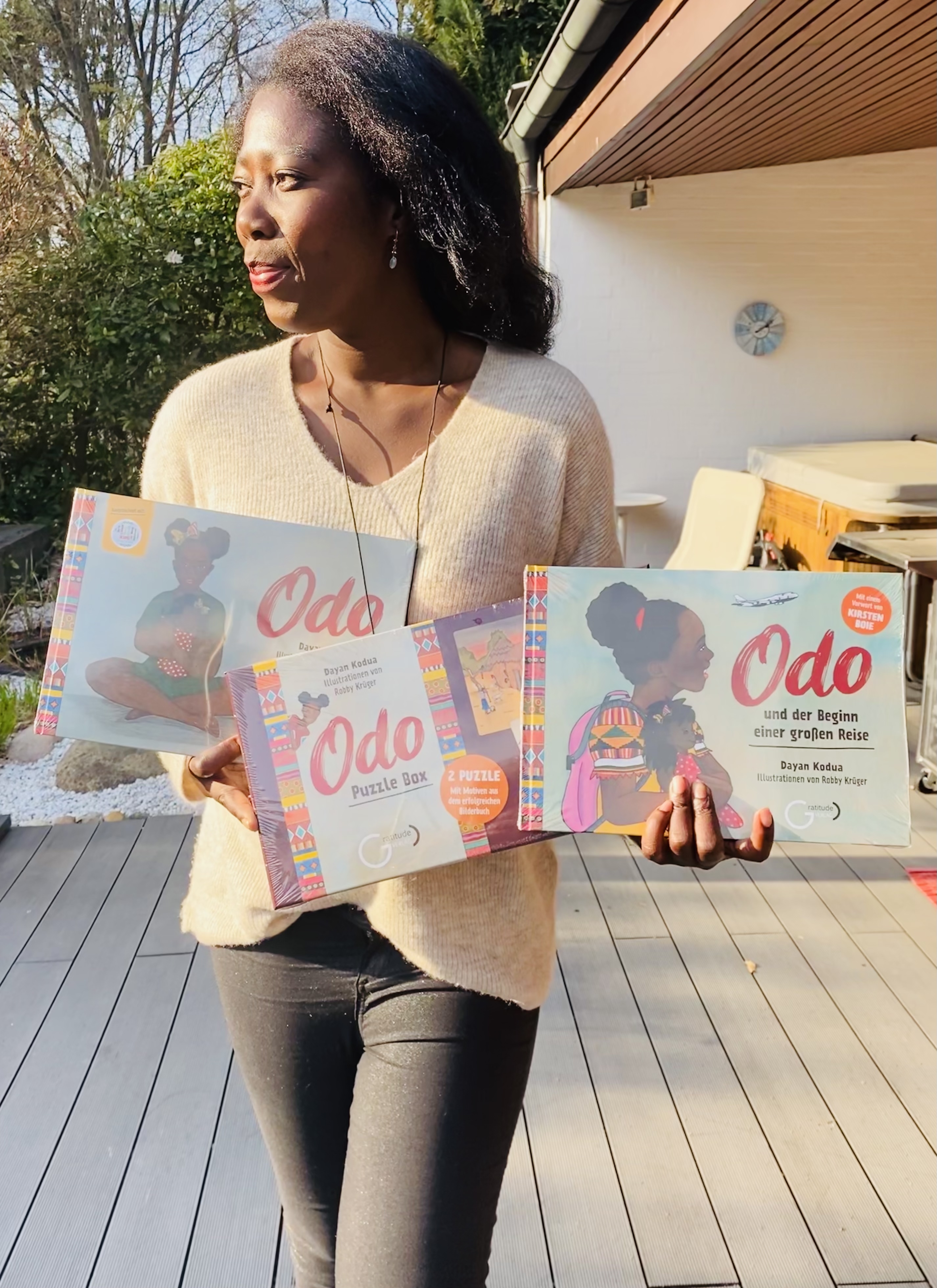 Dayan Kodua ist Schauspielerin, Sprecherin, Autorin und Gründerin des Gratitude Verlags. Sie wurde 1980 in Ghana geboren und wuchs ab ihrem 10. Lebensjahr in Kiel auf. Deutsch wurde ihre zweite Muttersprache neben ihrer Akan-Sprache Twi, dazu kam auch noch Englisch. Sie absolvierte eine Ausbildung als Wirtschaftsassistentin und studierte anschließend Schauspiel in Berlin und Los Angeles. Neben einer sich anschließenden sehr erfolgreichen und vielfältigen Karriere als Schauspielerin, Sprecherin und Model setzt sie sich leidenschaftlich für Empowerment und Sichtbarkeit von Schwarzen Menschen ein. 2014 veröffentlichte sie den Bildband My Black Skin: Schwarz. Erfolgreich. Deutsch und schuf dazu eine Wanderausstellung sowie Workshops. Besonders wichtig ist es ihr auch, Kinder auf ihre innere Stärke aufmerksam zu machen. Mit ihren Bilderbüchern wie „Odo“ und „Wenn meine Haare sprechen könnten“ inspiriert sie Kinder dazu, diese zu entdecken. 2019 gründete sie den Gratitude Verlag, um Autorinnen und Autoren und ihre vielfältige Geschichten zu fördern und der Öffentlichkeit zu präsentieren. Sie engagiert sich auch in verschiedenen Charity-Projekten wie dem Verein Licht für die Welt e.V. Deutschland. Dayan Kodua lebt mit ihrer Familie in Hamburg.