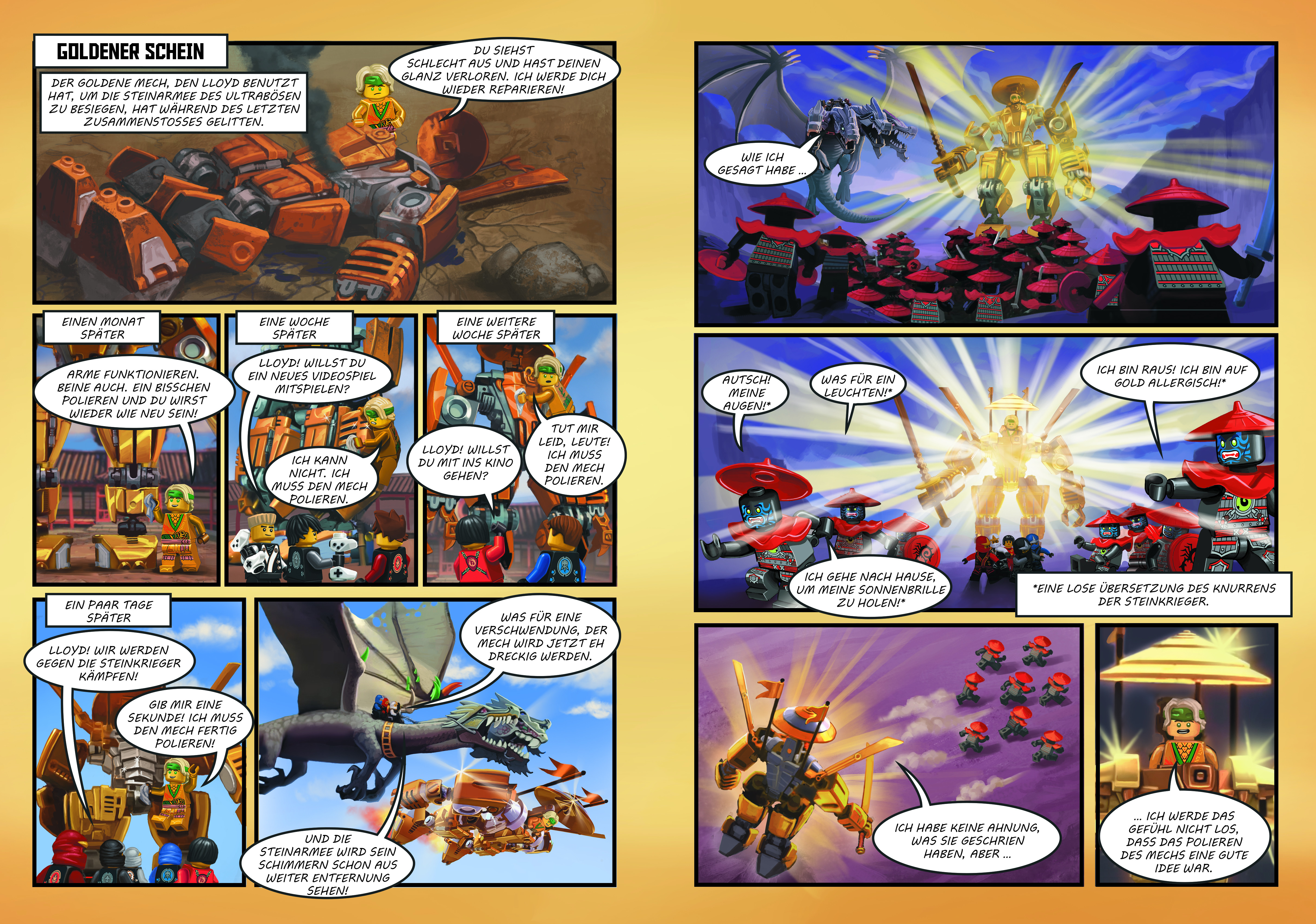 | Schlagworte | Abenteuer • action • Beschäftigung • Cole • Comic • Freunde • Freundschaft • Garmadon • Geschichte • goldener Ninja • Jay • Kai • Kampf • Kinder • Knobeln • LEGO • Lloyd • Meister Wu • Minifigur • Mission • Ninja • Ninjago • Nya • Raten • Rätsel • Sammelfigur • Spaß • Spinjitzu • Zane |