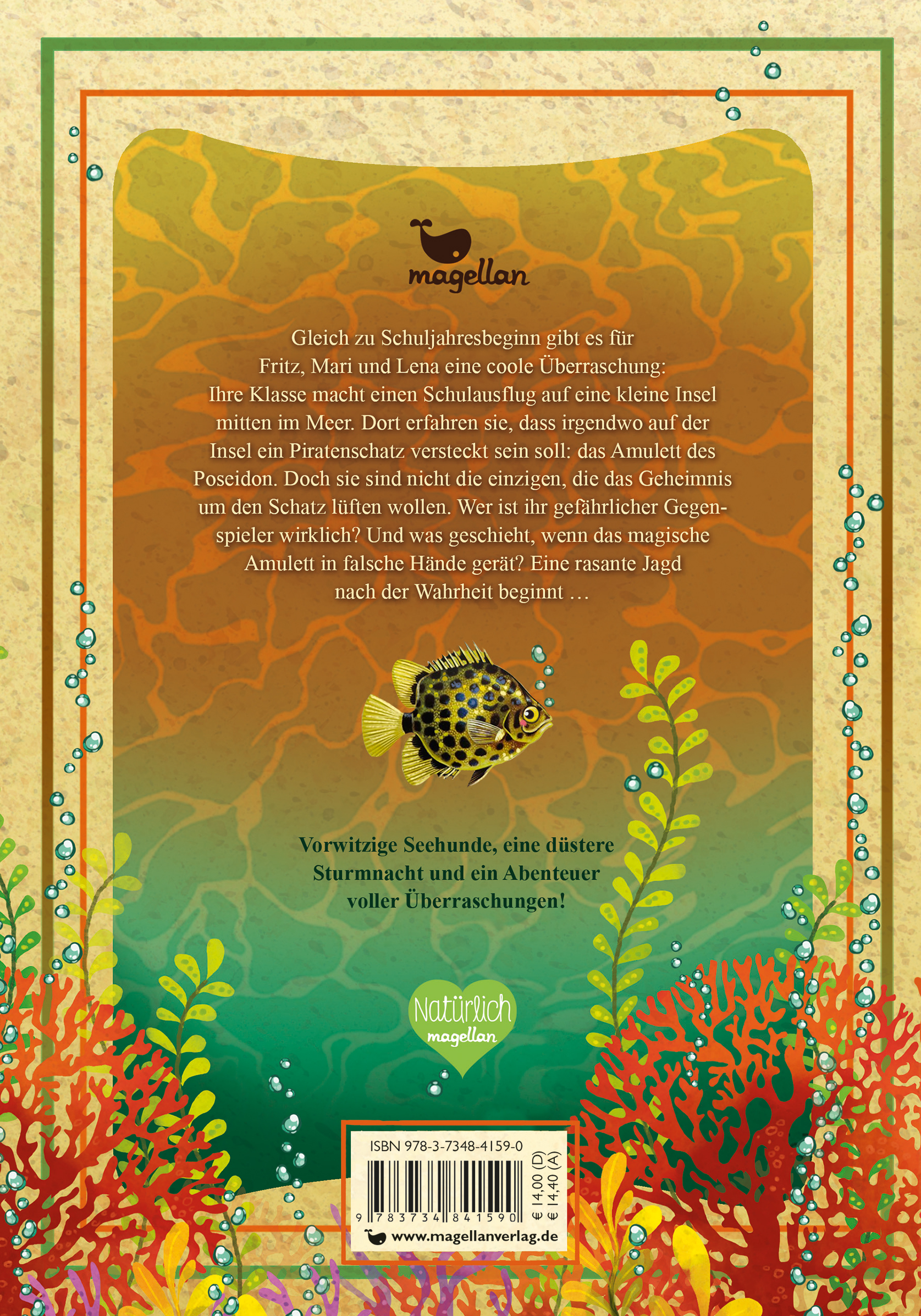 Nach wunderbaren Sommerferien in Maris Heimat, der Unterwasserstadt Almaris, gibt es zu Schuljahresbeginn für Fritz, Mari und Lena eine coole Überraschung: ein Schulausflug auf eine kleine Insel mitten im Meer. Bei einer Exkursion stoßen sie dort auf eine alte Legende. Irgendwo auf der Insel soll ein Piratenschatz versteckt sein, zu dem auch das Amulett des Poseidon gehört. Doch sie sind nicht die einzigen, die das Geheimnis um den Schatz lüften wollen, und bald schon befinden sie sich in höchster Gefahr. Doch wer ist ihr gefährlicher Gegenspieler? Und was geschieht, wenn das magische Amulett in falsche Hände gerät? Eine rasante Jagd nach der Wahrheit beginnt ...