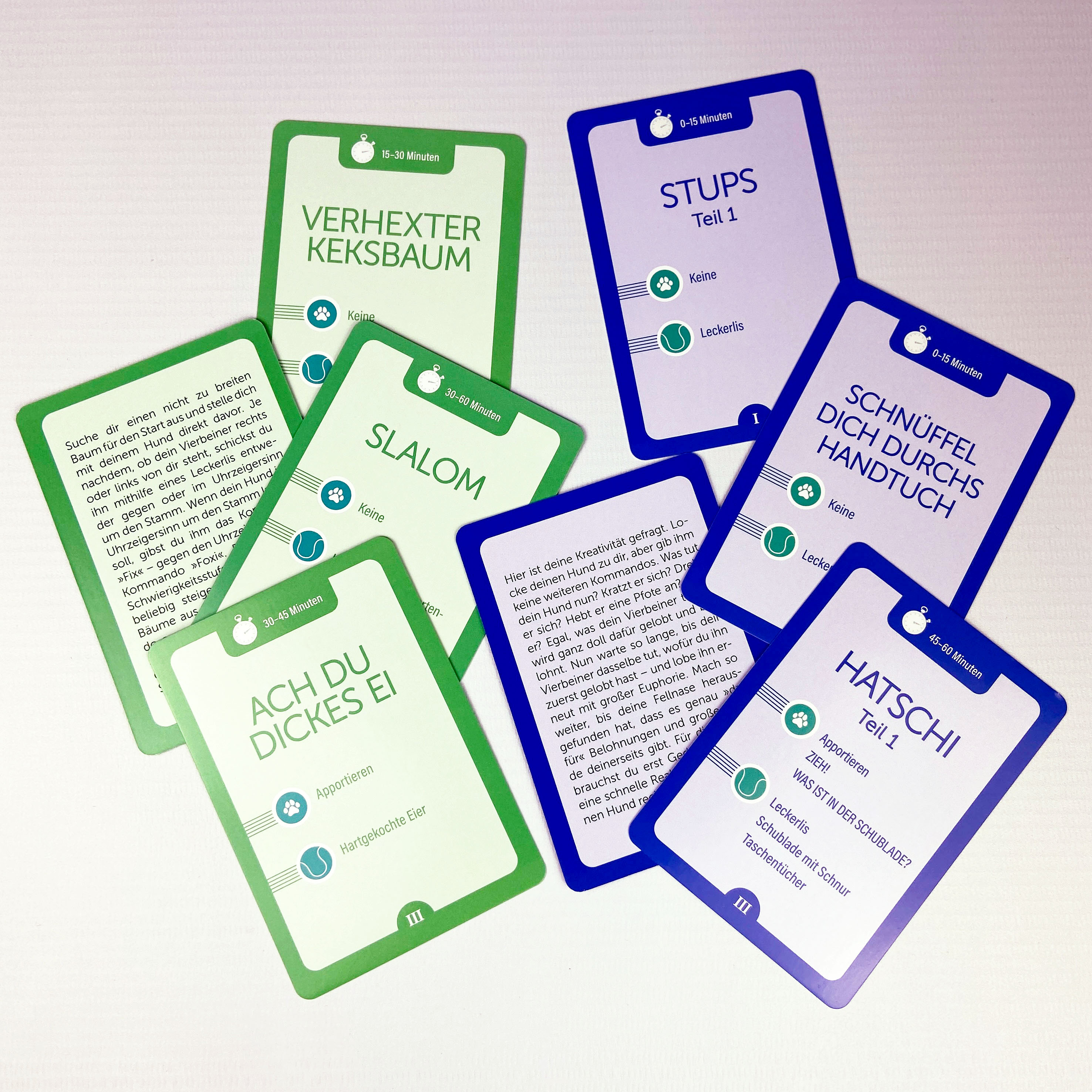Hunde sind am glücklichsten, wenn Herrchen und Frauchen mit ihnen spielen. Deswegen bieten dir diese Karten 55 tolle Spieleideen, Inspirationen und Tipps, wie du deinen Vierbeiner abwechslungsreich beschäftigst und dabei selbst jede Menge Spaß hast.