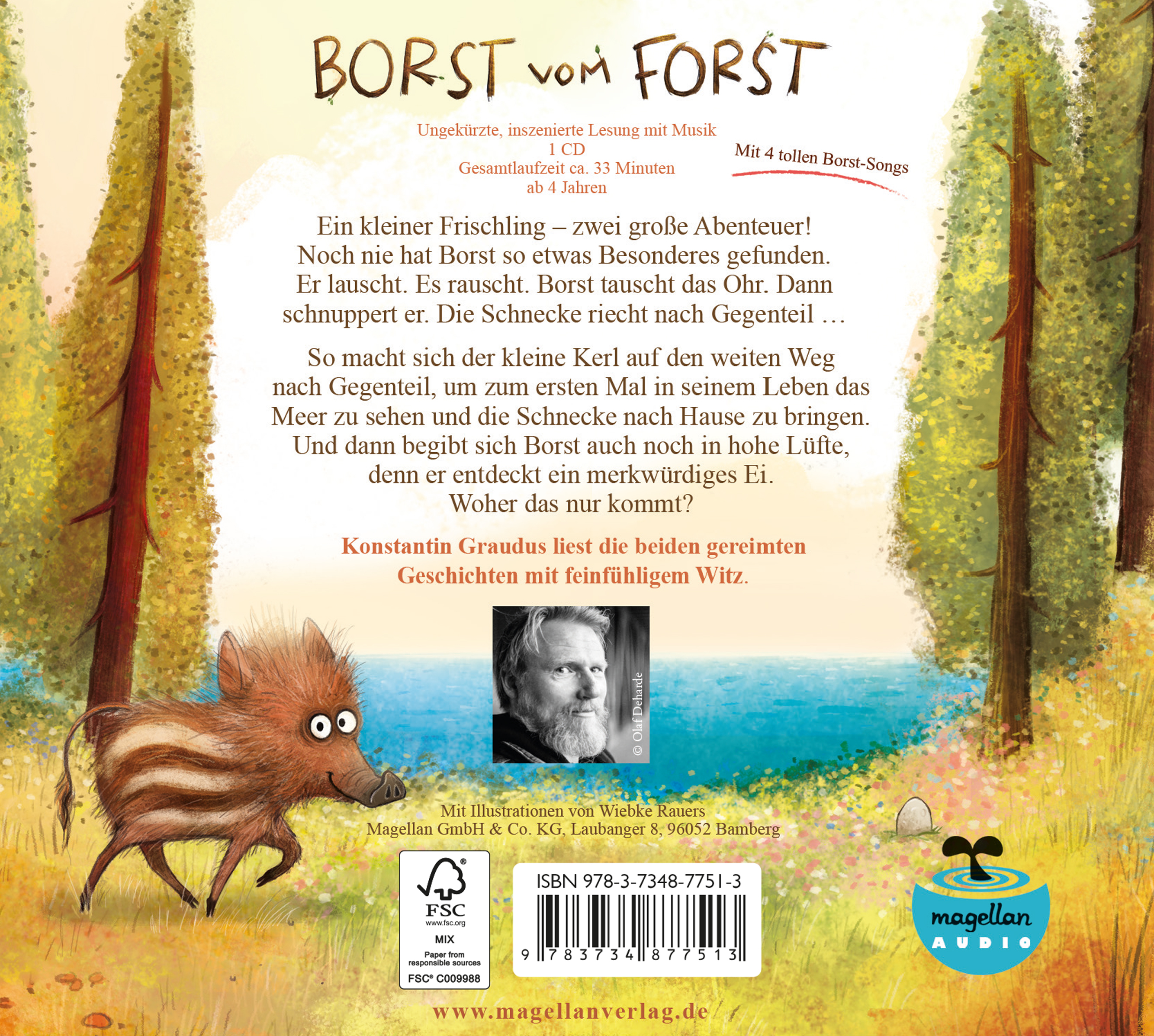 | Schlagworte | Abenteuer • Familie • Freundschaft • glücklich werden • Hörbuch ab 4 Jahren • Inszenierte Lesung mit Musik • Kinderlieder • Möwe • Neugier • Reise • Robbe • Selbstbewusstsein • Wald • Wildschwein, Frischling |
