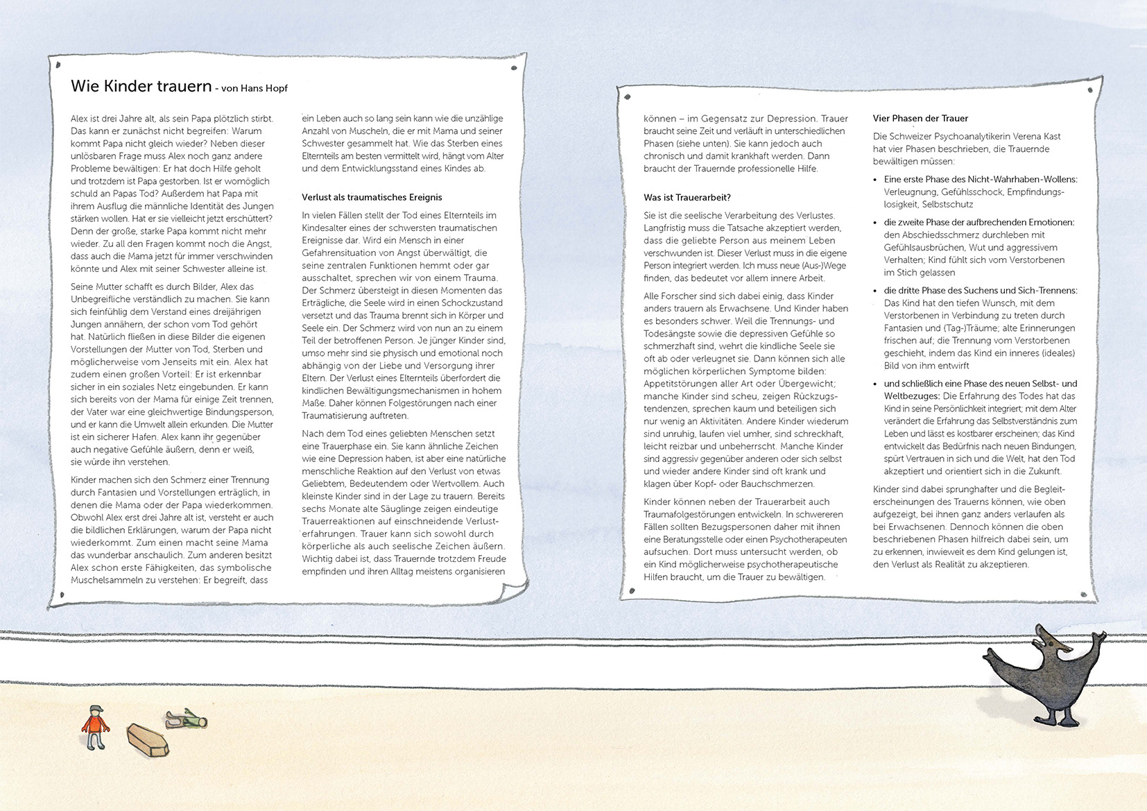| Schlagworte | Beratungsstelle • Bilderbücher Tod Eltern • Bindungsperson • Elternratgeber Tod • Elternverlust • Erzieher • Erziehungsberatungsstelle • Familie • Grundschule • Herzinfarkt • Ist Mama im Himmel? • Ist Papa im Himmel? • Kinder • kinderbücher 4 jahre • kinderbücher ab 4 • Kinderbücher Abschied • kinderbücher sterben • kinderbücher tod • Kinderbücher Trauerfall • Kinderbuch Tod Mutter • Kinderbuch Tod Vater • Kindergarten • Kindern Halt geben • Kinderpsychologen • Kinderpsychotherapeuten • Kinderpsychotherapie • Kindersachbuch • Kinder stärken • Kinder stärker machen • Kinder stark machen • Kindertagesstätte • Kindertrauer • Kindertrauerstelle • kindliche Trauerarbeit • kindliche Trauerreaktionen • Kita • Kommt Mama gleich wieder? • Kommt Mama zurück? • Kommt Papa zurück? • Lehrer • Pädagogen • Pathologische Trauer • Plötzlicher Tod • Ratgeber Kindertrauer • Sachbilderbuch • sicherer Hafen • SOS Kindertrauer • Sozialpädagogen • Sterben eines Elternteils • Sterben kindgerecht erklärt • Tod • Tod eines Elternteils • Tod eines geliebten Menschen • Todesängste • Todesfall Familie • Tod kindgerecht erklärt • Trauer • Trauerarbeit • Trauerarbeit Kinder • Trauerbegleitung • Trauerbegleitung Kinder • Trauer bei Kindern • Trauergruppe • trauernde Kinder • trauernde Kinder unterstützen • Trauerphase • Trauerphase Kinder • Trauerprozess • Trauerprozess Kinder • Trauerreaktionen Kinder • Trauerzeit Kinder • Trauma durch Verlust • Traumafolgestörungen • Umgang mit Tod • Umgang mit Verlust • Verlust • Verlustängste • Verwaiste Kinder • Vorlesebuch Tod Eltern • Warum ist Mama tot? • Warum ist Papa tot? • wenn ein geliebter Mensch stirbt • Wenn Eltern sterben • Wie Kinder trauern |