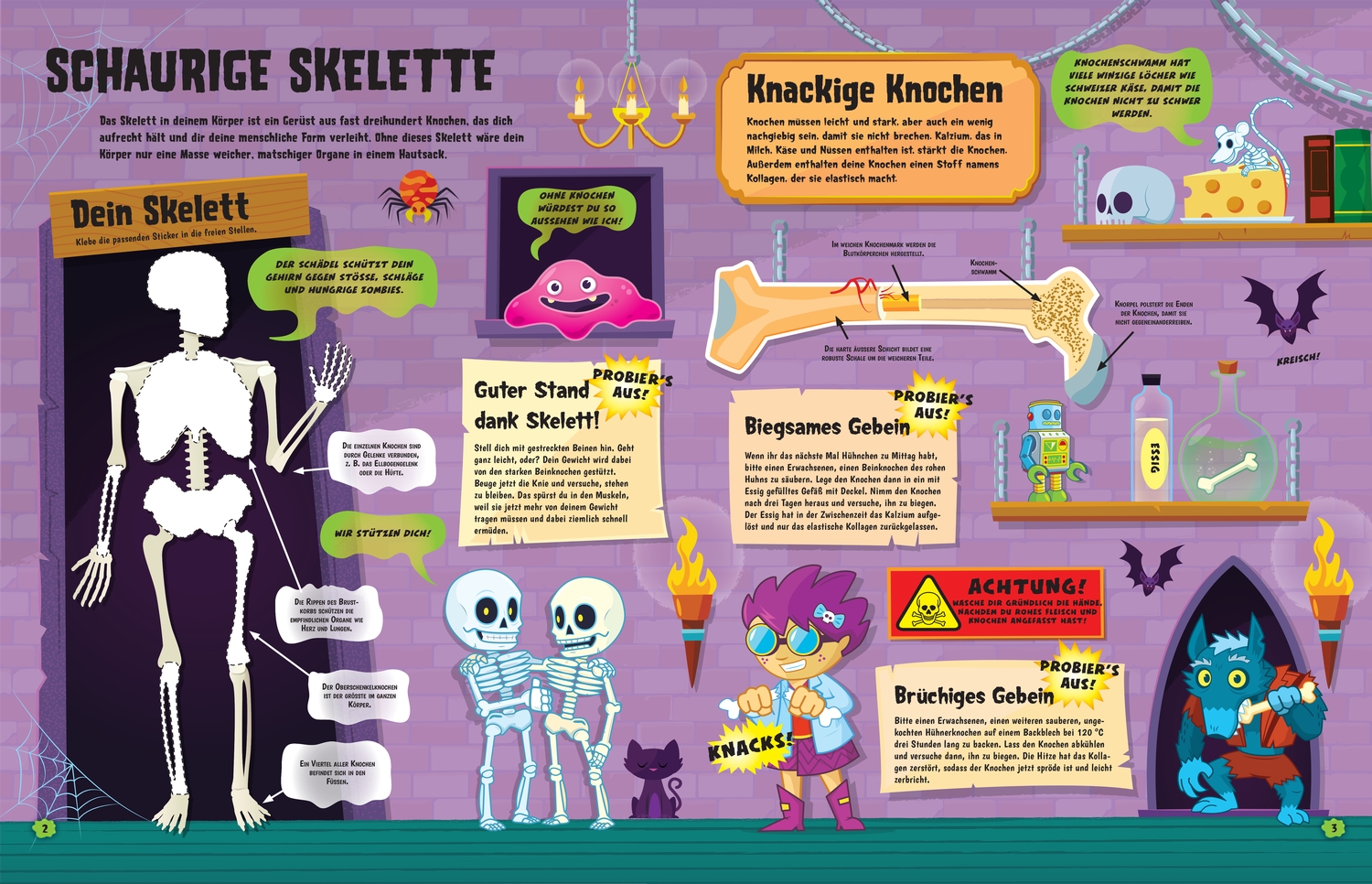 Es wird gruselig und monstermäßig gut. "Unser Körper" ist ein Experimentier-, Sticker- und Bastelbuch, das rund 30 spannende naturwissenschaftliche Projekte rund um den menschlichen Körper vereint. Dabei geht es zu wie bei Frankenstein, denn es wird anhand von Monstern erkundet, wie der menschliche Körper aufgebaut ist. Im Mittelpunkt steht die kurzweilige und unterhaltsame Beschäftigung mit dem Körper durch unterschiedliche kleine Projekte, die Schritt für Schritt zu Hause mithilfe der enthaltenen Bastel- und Stickerbögen sowie einiger weiterer haushaltsüblicher Gegenstände erledigt werden. Dazu gehören der Bau eines 3D-Skeletts und eine 3D-Zombiehand aus Karton, die Fertigung von essbarem Schnodder und vieles mehr. Ein monstermäßiger Spaß!