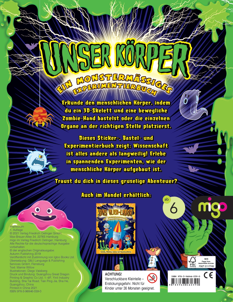 | Schlagworte | Activity • Activity Book • Anatomie für Kinder • Experimente für Kinder • Experimentierbuch • Experimentieren • Kinderbuch ab 6 • Kinderbücher ab 6 Jahre • lernen mit spaß • Menschlicher Körper • Migo • MINT • Monster • Monsterspaß • Stickerbuch |