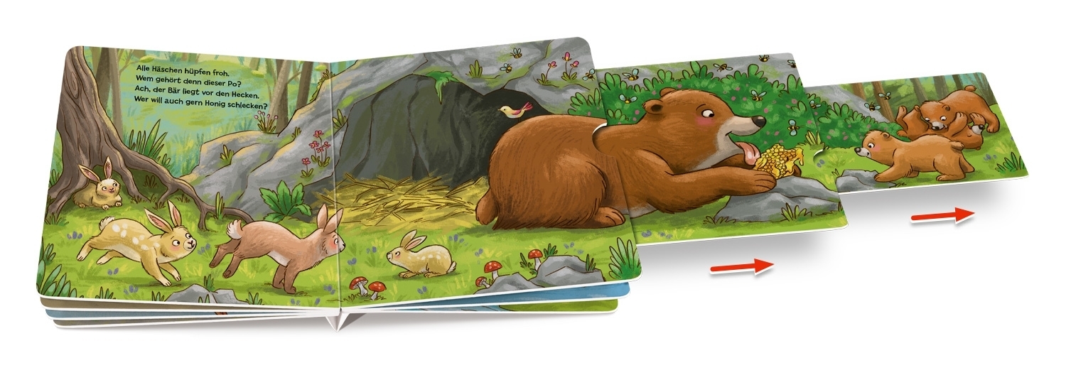 Im Wald gibt es jede Menge zu entdecken. Denn hinter Bäumen, Büschen, Steinen und Sträuchern verstecken sich nicht nur Waldtiere wie Fuchs, Reh oder Eule, sondern auch viele andere Überraschungen. Und das Beste: Dieses Buch macht doppelt so viel Spaß, denn jede Seite lässt sich zweimal aufziehen und erweitern. So entsteht noch mehr Platz für die vergnüglichen Reime von Bestseller-Autorin Sandra Grimm und die detailreichen Illustrationen von Larisa Lauber.