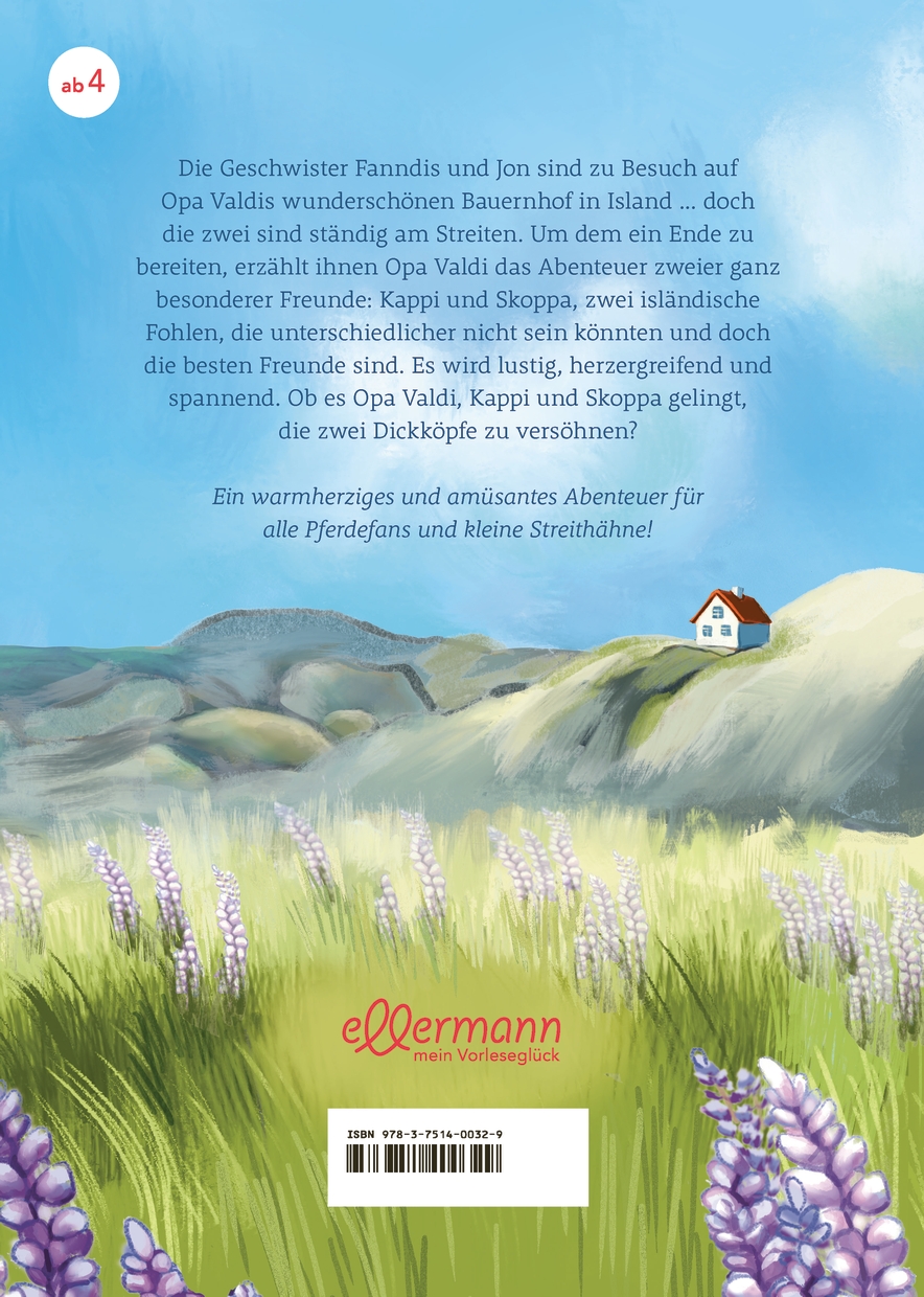 Die Geschwister Fanndis und Jon sind zu Besuch auf Opa Valdis Bauernhof in Island ... und sie streiten sich die ganze Zeit um alles und jedes. Doch dann erzählt ihnen Opa Valdis das Abenteuer zweier ganz besonderer Freunde: Kappi und Skoppa. Zwei isländische Fohlen, die unterschiedlicher nicht sein könnten und doch die besten Freunde sind. Es wird lustig, herzergreifend und spannend. So spannend, dass sogar Fanndis und Jon auf einmal vergessen sich zu streiten.