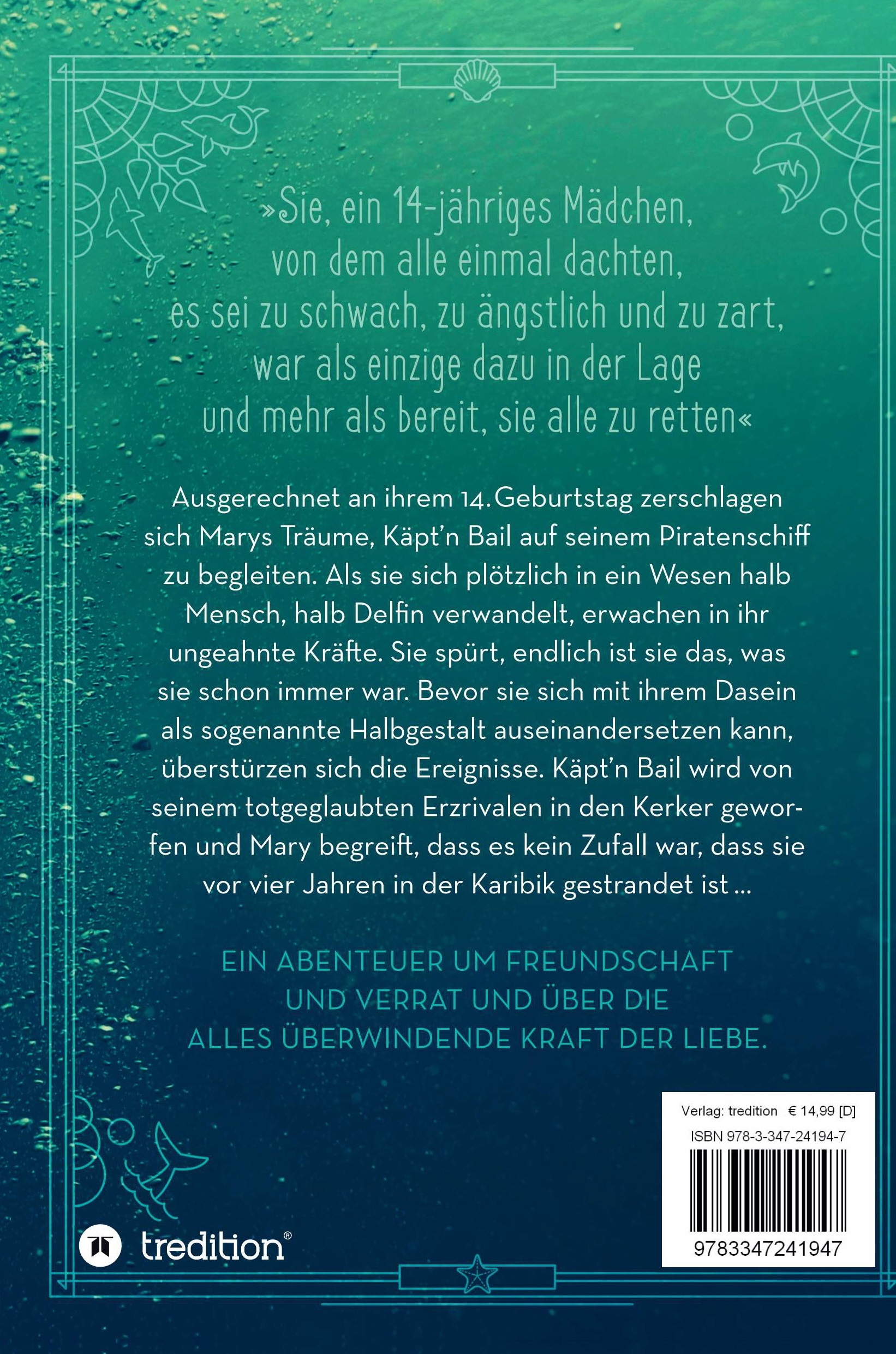 Ausgerechnet an ihrem 14.Geburtstag zerschlagen sich Marys Träume, Käpt'n Bail auf seinem Piratenschiff zu begleiten. Als sie sich plötzlich in ein Wesen halb Mensch, halb Delfin verwandelt, erwachen in ihr ungeahnte Kräfte. Sie spürt, endlich ist sie das, was sie schon immer war. Bevor sie sich mit ihrem Dasein als sogenannte Halbgestalt auseinandersetzen kann, überstürzen sich die Ereignisse. Käpt'n Bail wird von seinem totgeglaubten Erzrivalen in den Kerker geworfen und Mary begreift, dass es kein Zufall war, dass sie vor vier Jahren in der Karibik gestrandet ist... Ein Abenteuer um Freundschaft und Verrat und über die alles überwindende Kraft der Liebe.