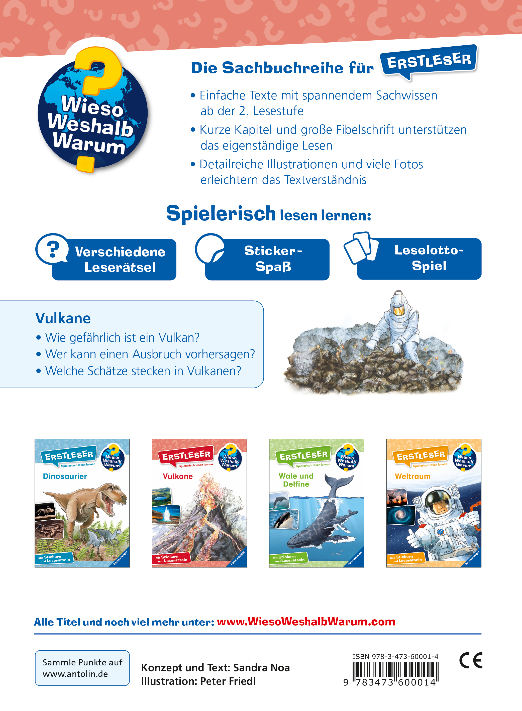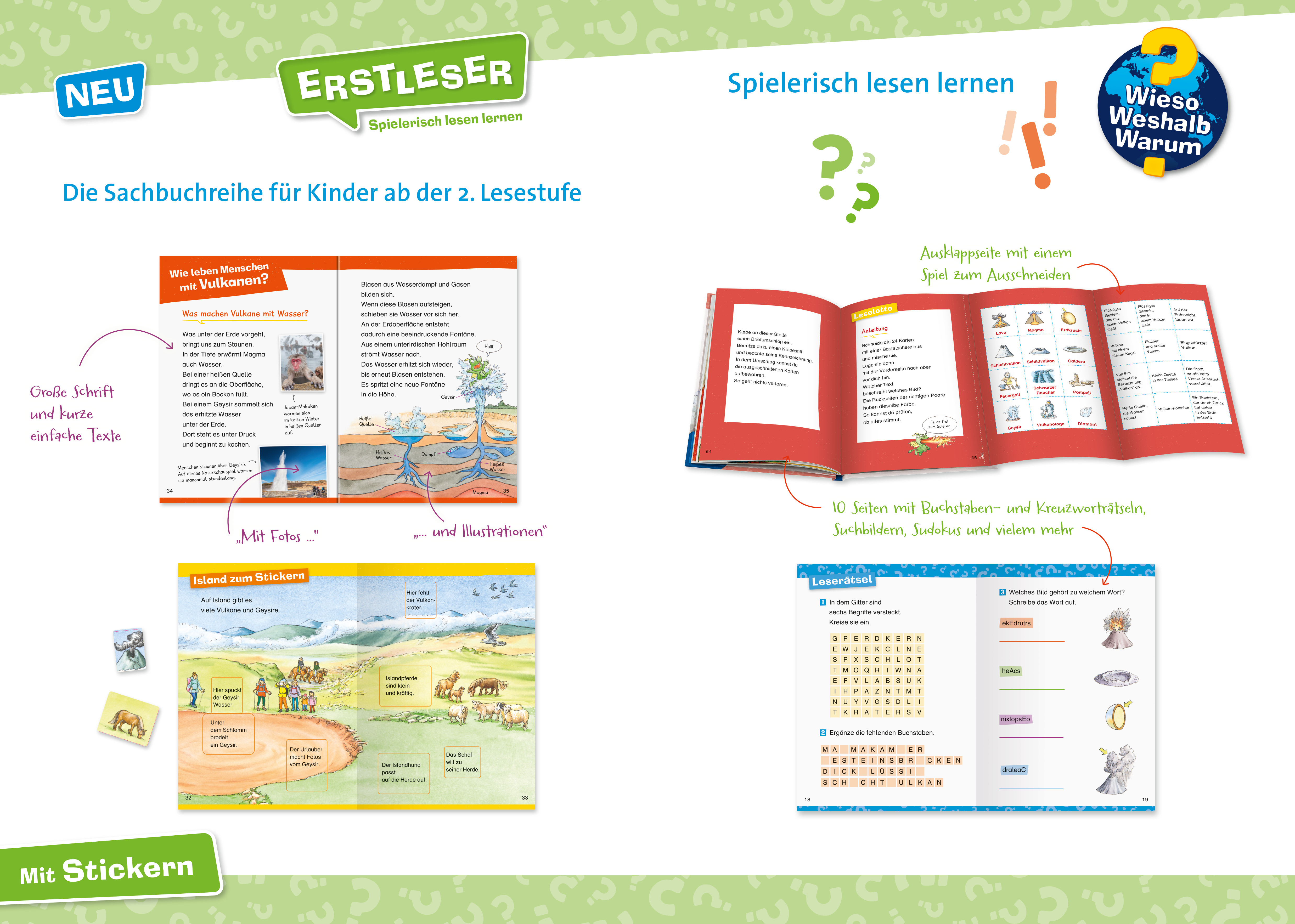 Mit der Reihe Wieso? Weshalb? Warum? Erstleser erschließen sich Kinder ihre Lieblingsthemen selbst. In vier Kapiteln beantworten die Bücher brennende Kinderfragen in kurzen, leicht verständlichen Sätzen. Wie lebt man auf einer Raumstation? Welche Sprache sprechen Wale? Wie gefährlich ist ein Vulkan?