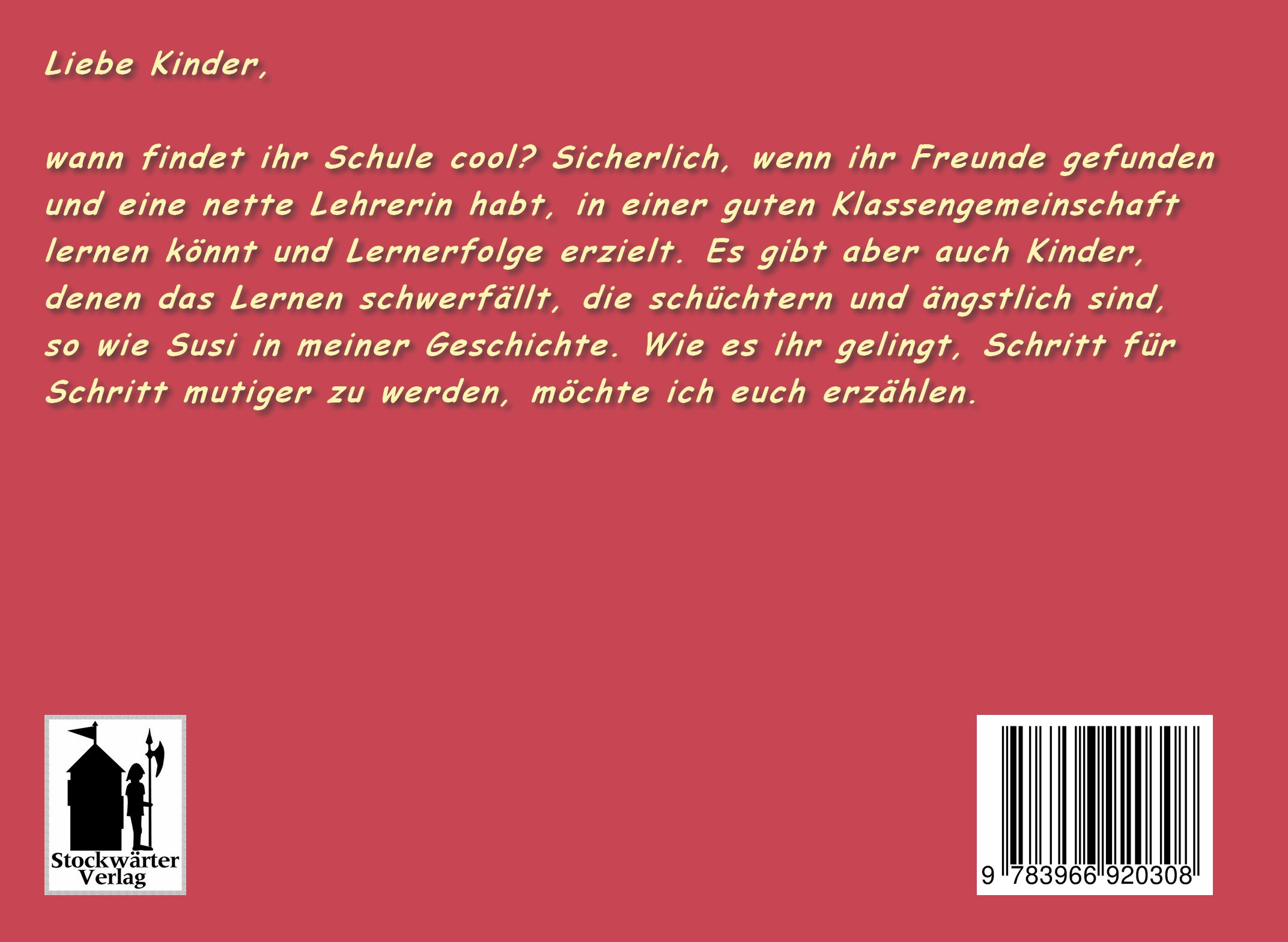 wann findet ihr Schule cool? Sicherlich, wenn ihr Freunde gefunden und eine nette Lehrerin habt, in einer guten Klassengemeinschaft lernen könnt und Lernerfolge erzielt. Es gibt aber auch Kinder, denen das Lernen schwerfällt, die schüchtern und ängstlich sind, so wie Susi in meiner Geschichte. Wie es ihr gelingt, Schritt für Schritt mutiger zu werden, möchte ich euch erzählen.