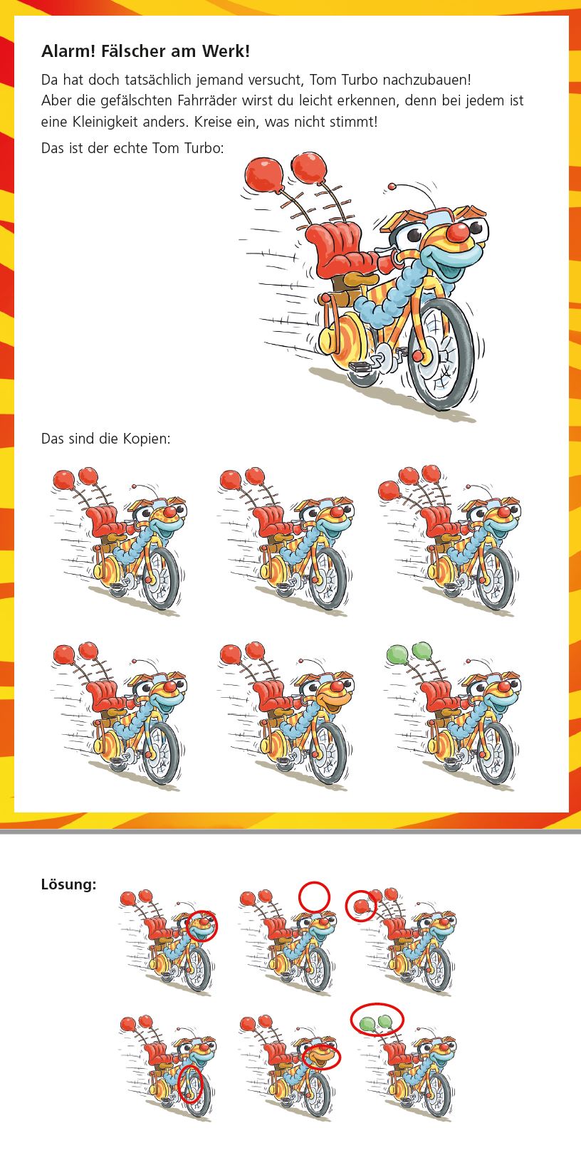 Mit Tom Turbo, dem tollsten Fahrrad der Welt, und seinen besten Freunden, den Geschwistern Karo und Klaro, macht das Rätsellösen großen Spaß!