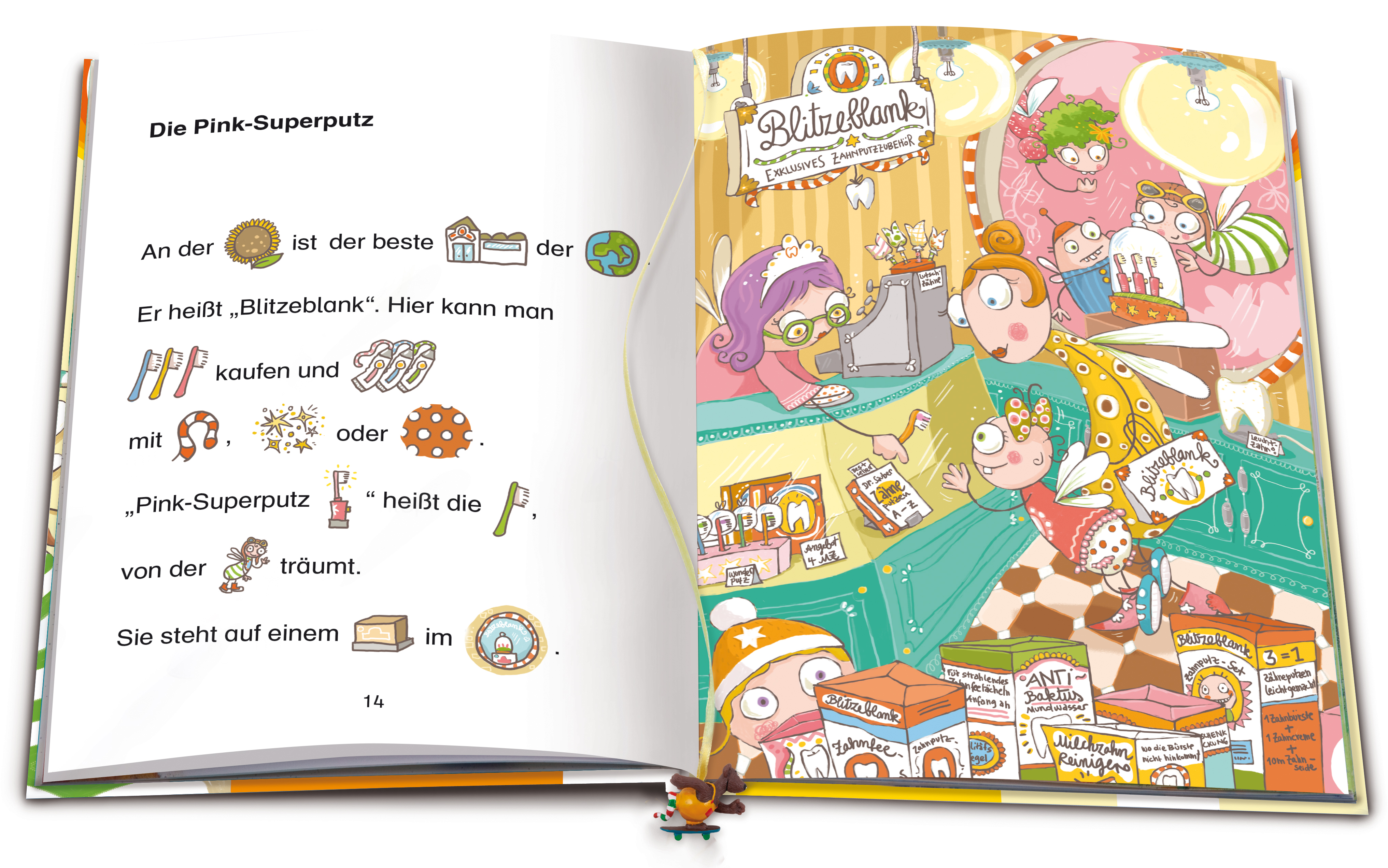 Mücke, die kleine Zahnfee, möchte unbedingt die tolle Zahnbürste "Pink-Superputz" haben. Doch dafür braucht sie drei Milchzähne - so viel kostet die Zahnbürste nämlich im Zahnfeenladen. Also geht Mücke zusammen mit ihren Freunden Mops und Motte auf Milchzahn-Jagd. Aber nicht unter jedem Kissen findet sich ein Zahn! Ob Mücke die letzte "Pink-Superputz" wirklich bekommen wird? Ein witziges und spannendes Abenteuer - nicht nur für Kinder mit Wackelzahn.