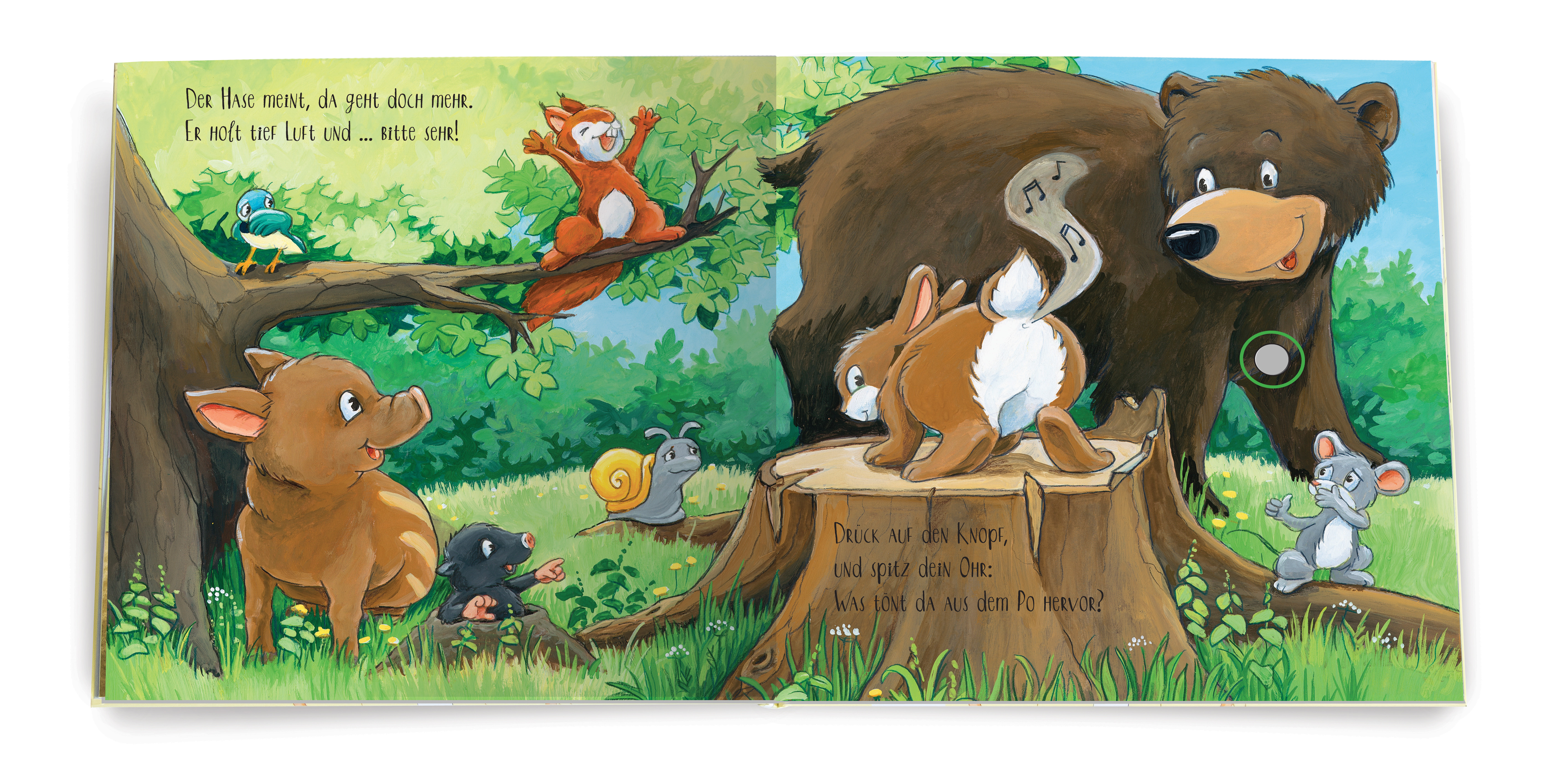 Oje, dem Bären ist ein Pups entwischt! Statt ihn zu rüffeln, machen seine Freunde kurzerhand einen Wettbewerb daraus. Hase, Wildschwein oder Maus - wer drückt den lautesten Pups heraus?