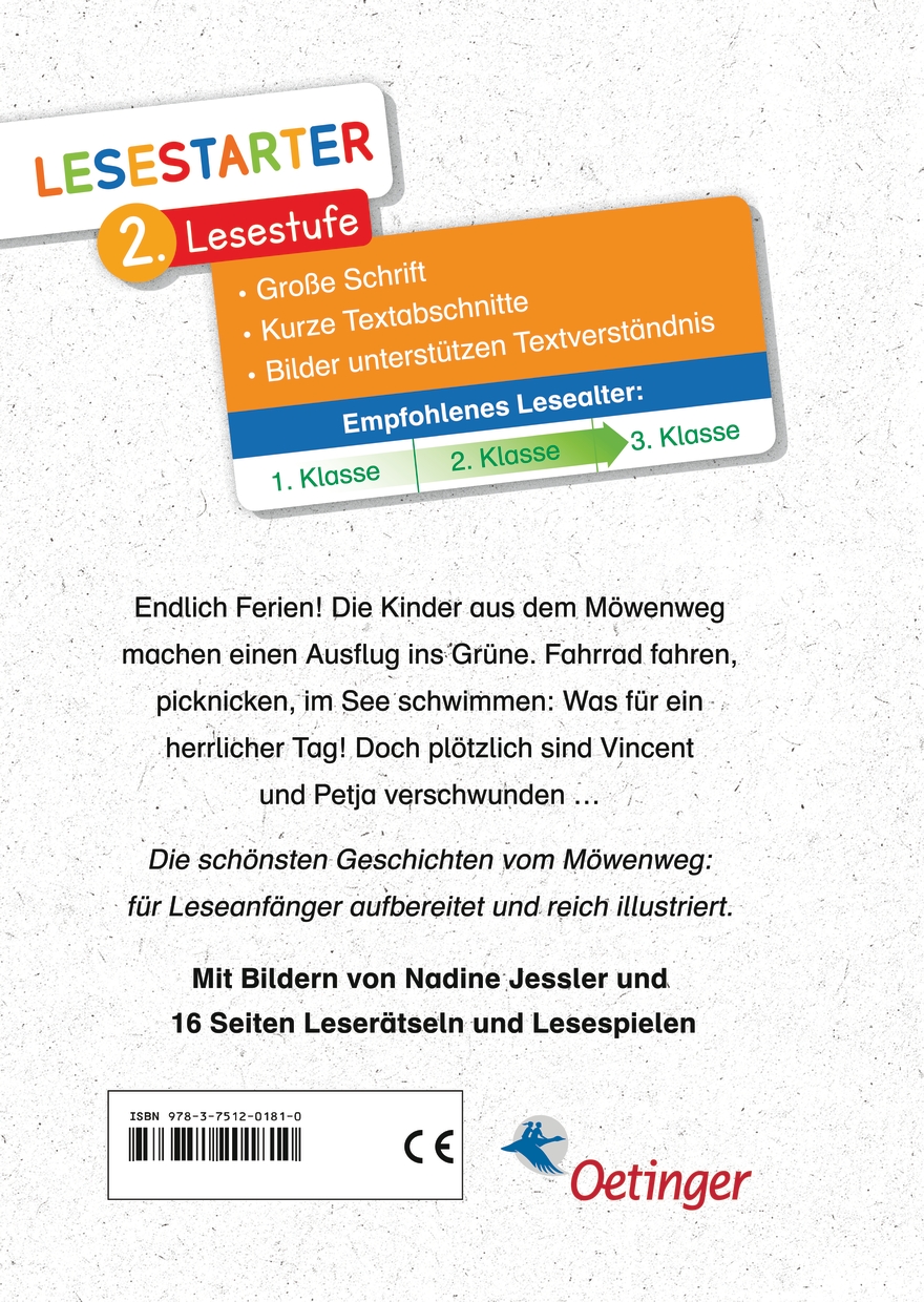 lt;p>Wie schön es ist im Möwenweg, wenn endlich Ferien sind! Die Kinder im Möwenweg freuen sich ganz fürchterlich auf die Sommerferien! Jeden Tag können sie etwas unternehmen. Gleich am ersten Ferientag schlägt Michael, der lustigste von allen Vätern einen Ausflug mit dem Fahrrad zum Badesee vor. Mit dem Rad durch die Felder fahren, ein Picknick machen und im See schwimmen gehen: ein Tag im Grünen könnte nicht schöner sein! Doch plötzlich bekommen alle einen großen Schreck: Petja und Vincent sind nicht mehr im Wasser zu sehen. Sie sind doch nicht ertrunken? "Abenteuer im Möwenweg" von Kirsten Boie wurde extra für Leseanfänger sprachlich aufbereitet.