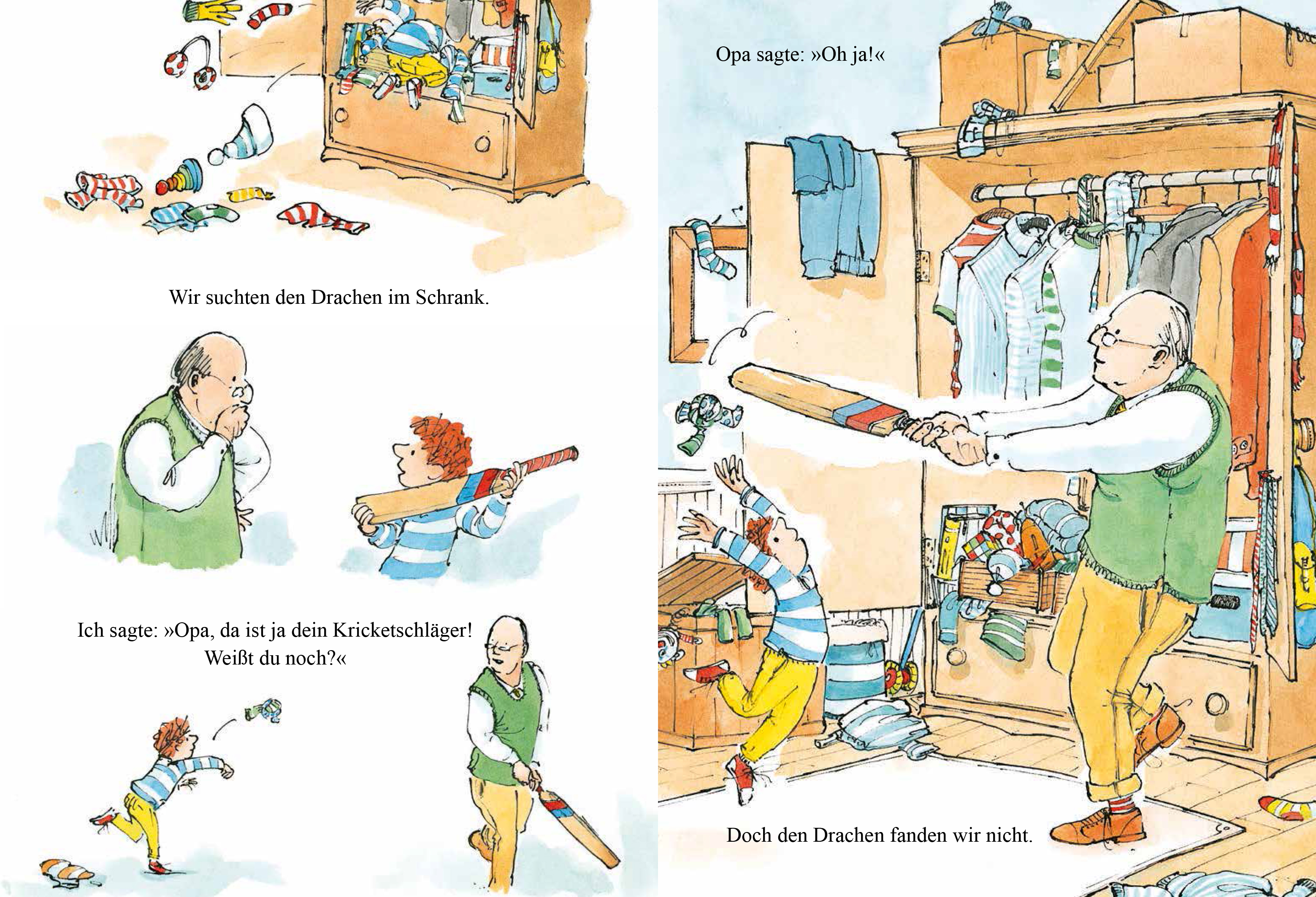 Es gibt kein schlechtes Wetter, wenn man Fantasie hat - und einen Opa, mit dem jeder Tag ein Abenteuer ist! Denn nur weil es regnet, bleiben der Junge und sein Großvater ganz sicher nicht zu Hause. Im Hochsommer wird die Suche nach dem perfekten Picknickplatz zu einer fantastischen Reise. Wenn es stürmisch wird, lassen die beiden Drachen steigen - und vielleicht fliegen sie gleich ein Stück mit? Und im Winter erleben der Junge und sein Opa das tierischste Abenteuer überhaupt!