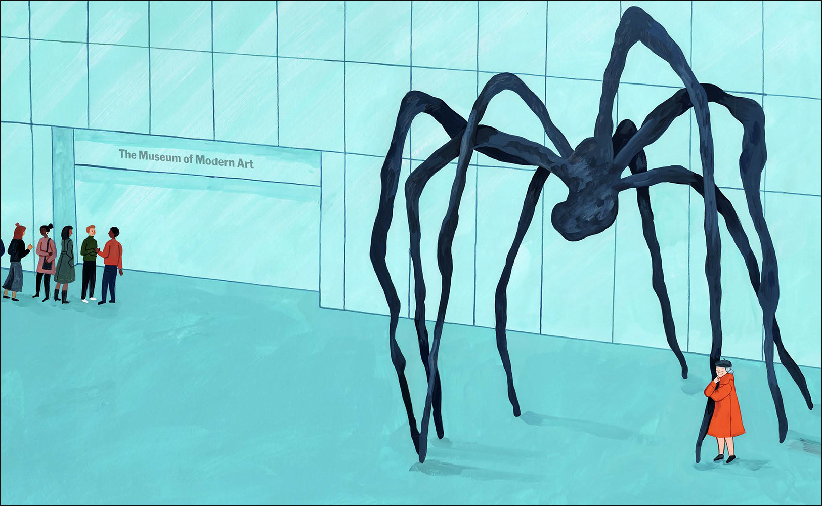 Als Louise klein war, wurde ihre Mutter sehr krank. Sie war sehr traurig und hatte Angst, aber zu malen tröstete sie und gab ihr Hoffnung. Später studierte Louise Kunst und ging in die USA. Dort stellte sie große Skulpturen aus ganz verschiedenen Materialien her. Mit ihren ungewöhnlichen Kunstwerken überraschte sie die Menschen immer wieder. Ihr Mut und ihr Talent inspirieren heute Künstler auf der ganzen Welt.