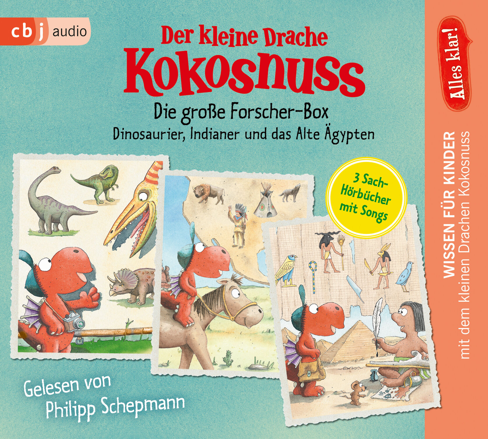 Wann haben die Dinosaurier gelebt und warum sind sie heute ausgestorben? Wohnen alle Indianer in Zelten und in welchem Alter bekamen Indianerkinder ihr erstes eigenes Pferd? Warum haben die Alten Ägypter die riesigen Pyramiden erbaut und wie entsteht eine Mumie? Wie jedes Kind hat der kleine Drache Kokosnuss tausend Fragen im Kopf. Gemeinsam mit seinen Freunden Matilda und Oskar macht er sich auf eine spannende Zeitreise. Für die kleinen Hörerinnen und Hörer haben sie nicht nur viele spannende Fakten im Gepäck, sondern auch mitreißende Songs und viele anschauliche Bilder im Booklet.Diese Box enthält die Wissensabenteuer "Der kleine Drache Kokosnuss erforscht die Dinosaurier", "Der kleine Drache Kokosnuss erforscht die Indianer" und "Der kleine Drache Kokosnuss erforscht das Alte Ägypten".