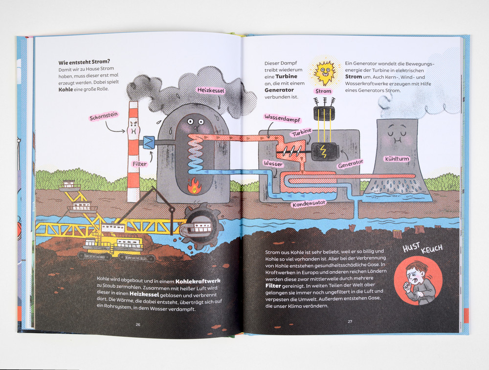 »Die Bildwelt dieses Sachbuches erfüllt vielfältige Funktionen – didaktische, illustrative und komische. Es werden technische Prozesse visualisiert wie zum Beispiel die Stromgewinnung in einem Staudamm; dann wiederum lockern kreisförmige Vignetten die Texte auf.« Jurybegründung »Eines der schönsten deutschen Bücher 2022« der Stiftung Buchkunst