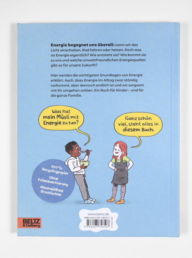 Energie begegnet uns überall: wenn wir das Licht einschalten, Rad fahren oder heizen. Doch was ist Energie eigentlich? Wie entsteht sie? Wie kommt sie zu uns und welche umweltschonenden Alternativen der Energieerzeugung und -nutzung für unsere Zukunft gibt es? Dieses illustrierte Sachbuch erklärt die wichtigsten Grundlagen und zeigt, dass Energie zwar im Alltag ständig vorkommt, wir sie dennoch nicht verschwenden sollten. Ein Buch für Kinder ab 8 Jahren - und für die ganze Familie. Entdecke unsere Sachbücher mit den relevanten Fragenstellungen unserer Zeit und unserer Zukunft. Für Kinder erklärt.-MÜLL. Alles über die lästigste Sache der Welt. -VOLL UNFAIR! Über Gerechtigkeit und Fairness.-WIE VIEL WÄRMER IST 1 GRAD? Was beim Klimawandel passiert. -OHNE WASSER GEHT NICHTS! Alles über den wichtigsten Stoff der Welt. -DAS IST AUCH MEINE WELT. Wie können wir sie besser machen?-WAS IST ZUHAUSE? Vom Wohnen, Leben, Weggehen und Ankommen.-ALLES IN BEWEGUNG. Wie wir von A nach B und die Dinge zu uns kommen.-WIR MENSCHEN UND DAS MEER. Ozeane Nahrung, Strom und Rohstoffe liefern und das Klima beeinflussen.-DIE VIELFALT DER NATUR. Warum wir Biodiversität brauchen und wie wir sie erhalten können. Erforscht die Vielfalt in Natur und Gesellschaft! Wichtige Themen unserer Zeit - anschaulich erklärtUmweltfreundliche Ausstattung, u. a. durch 100 % Recyclingpapier, Öko-Druckfarben und Verzicht auf FolienkaschierungAnsprechend und lebendig illustriertAuch Erwachsene lernen hier noch etwas