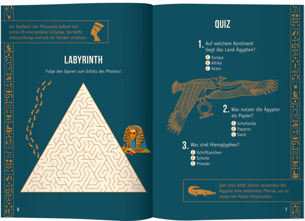 Wer löst das Rätsel um die Pharaonen-Maske?Dieses Rätselbuch hat es in sich, denn es warten aufregende Rätsel und viele Hinweise rund um die alten Ägypter auf Knobelfans. Nur wer klug kombiniert und die kniffligen Aufgaben Stück für Stück löst, erhält alle Informationen zur Lösung des letzten, entscheidenden Rätsels.Los geht`s - Wissen sammeln und Rätsel lösen!