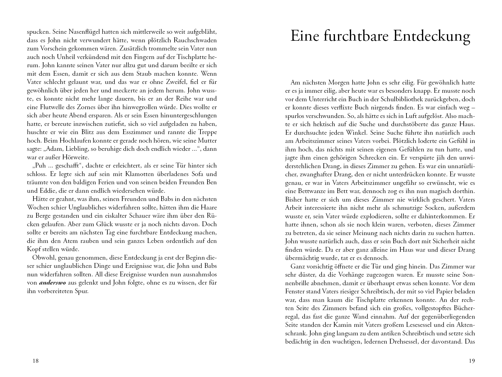 John ist 15 Jahre alt und hätte nicht im Traum daran gedacht, etwas Außergewöhnliches zu sein. Eines Tages jedoch entdeckt er mit seiner Schwester Babs ein mysteriöses Schriftstück und plötzlich ist nichts mehr, wie es sein sollte.
