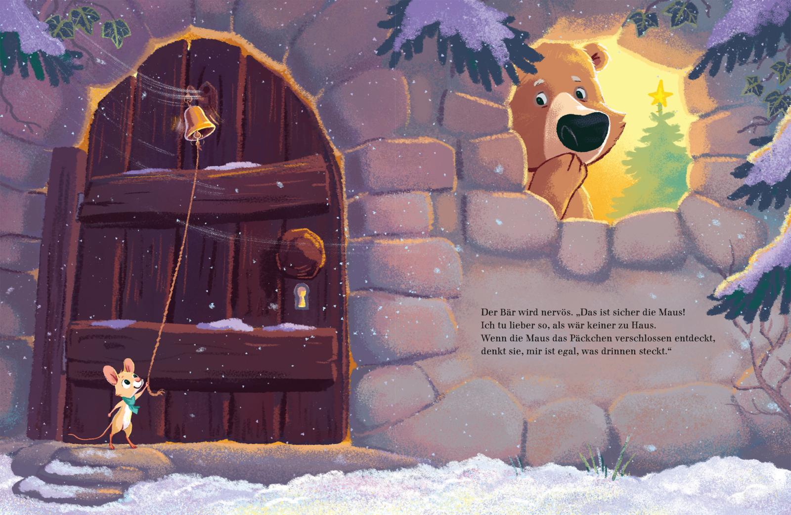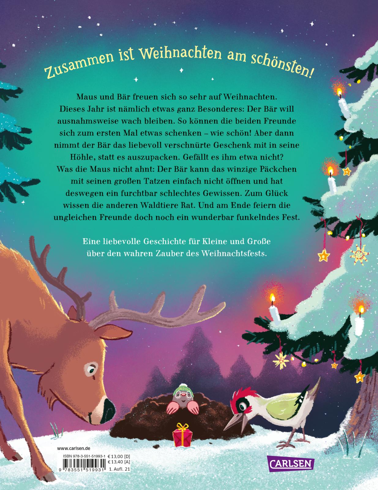 Maus und Bär freuen sich sehr auf Weihnachten. Das duftet, glitzert und schmeckt so wunderbar! Und dieses Jahr ist etwas ganz Besonderes: Der Bär will nämlich ausnahmsweise wach bleiben. So können die beiden Freunde sich zum ersten Mal etwas schenken - wie schön! Aber dann nimmt der Bär das liebevoll verschnürte Geschenk mit in seine Höhle, statt es auszupacken. Gefällt es ihm etwa nicht?