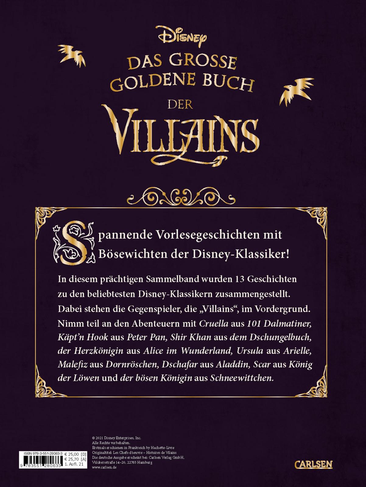 Was wären Disney-Filme wie "Peter Pan", "101 Dalmatiner", "Dornröschen" oder "Der König der Löwen" ohne ihre Schurken? Auf jeden Fall nur halb so spannend! In diesem hochwertigen Vorlesebuch dreht sich deshalb alles um die Disney Villains. In 13 magischen und mitreißenden Geschichten hecken Cruella De Vil, Käpt'n Hook oder der hinterlistige Tiger Shir Khan aus "Das Dschungelbuch" neue gemeine Pläne aus. Als kurze Gute-Nacht-Geschichten gestaltet, eignen sich die Erzählungen perfekt für das abendliche Vorleseritual. Ein Muss für jede Familienbibliothek!