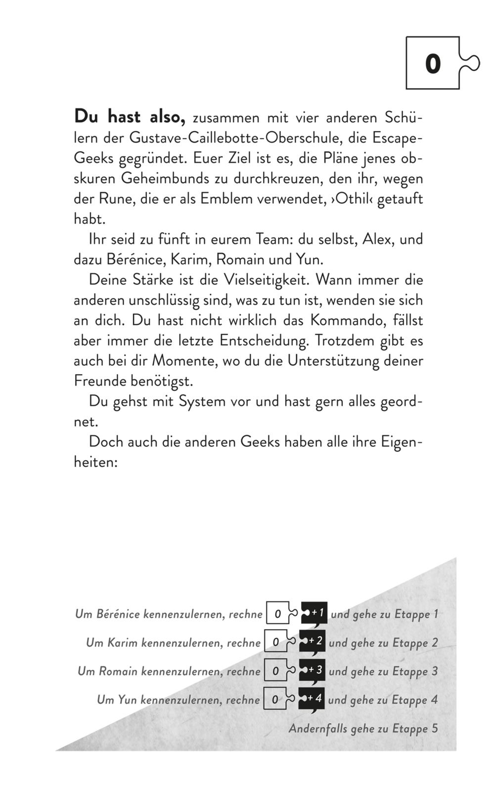 In Alex' neuer Schule in Paris ist etwas faul. Im Schulgebäude entdeckt er seltsame Zeichen. Zudem kursiert das Gerücht, dass Jahre zuvor ein Schüler im Keller der Schule eingemauert wurde. Ob das wirklich stimmt? Gemeinsam mit vier weiteren Abenteuerfans und Dir macht sich Alex auf Spurensuche in den gefährlichen Katakomben von Paris. Löse knifflige Rätsel, entschlüssele Suchbilder und entscheide selbst, welchen Weg ihr geht. Scheiterst Du, bleibt ihr womöglich für immer in den Katakomben gefangen ...