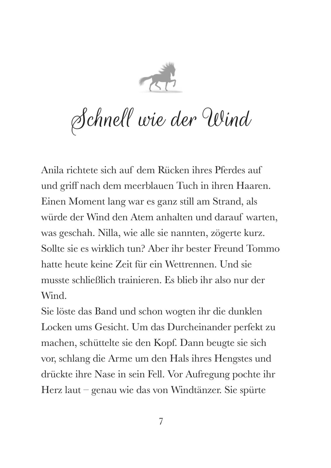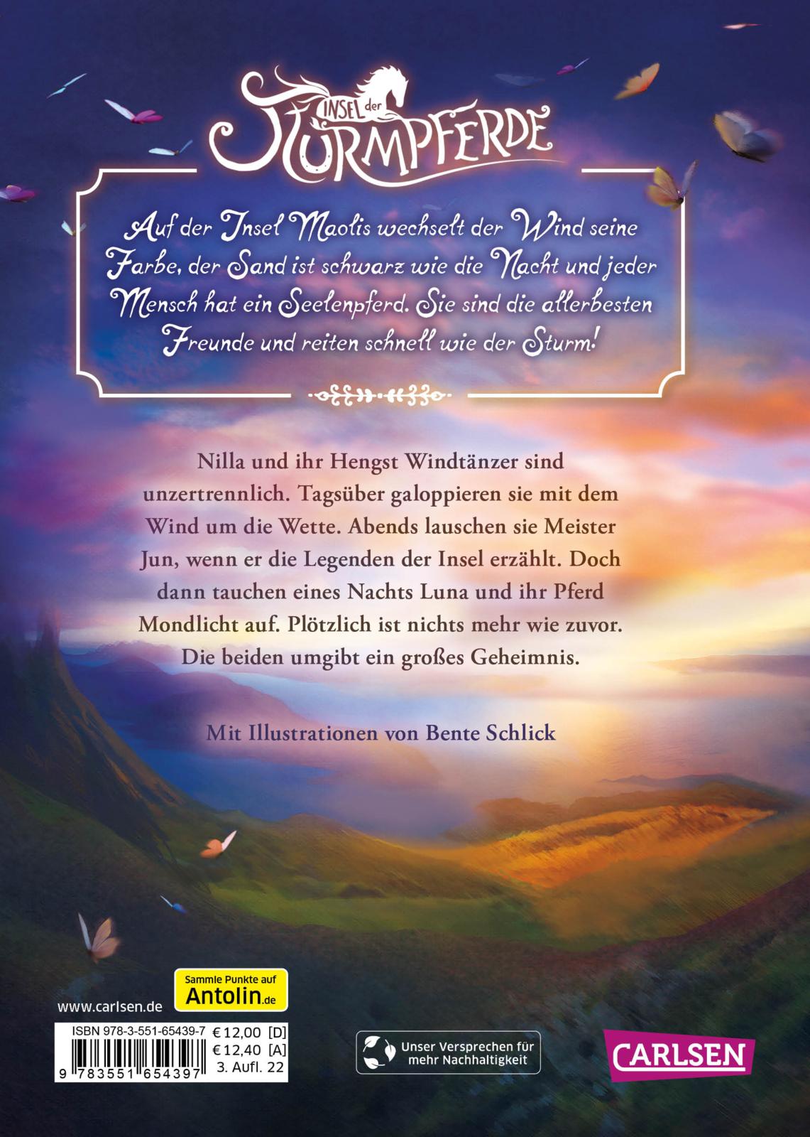 Band 1: Nilla und ihr Hengst Windtänzer sind unzertrennlich. Tagsüber galoppieren sie mit dem Wind um die Wette. Abends lauschen sie Meister Jun, wenn er die Legenden der Insel erzählt. Doch dann tauchen eines Nachts Luna und ihr Pferd Mondlicht auf. Nilla spürt sofort, dass die beiden ein Geheimnis umgibt.