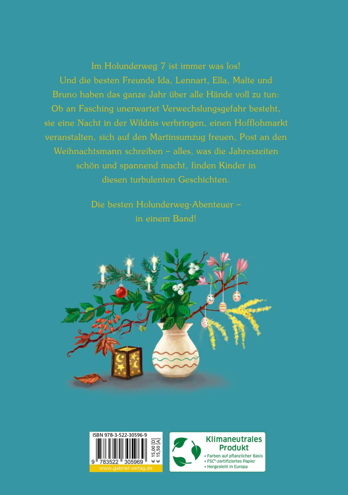 Die besten Freunde Ida, Lennart, Ella, Malte und Bruno aus dem Holunderweg 7 haben alle Hände voll zu tun: Ob sie eine Ostereiersuchprobe machen, im Sommer mit ihren Papas Zelten gehen, im Herbst Drachen steigen lassen oder Post an den Weihnachtsmann schreiben - alles, was die Jahreszeiten schön und spannend macht, finden Kinder in diesen turbulenten Geschichten.