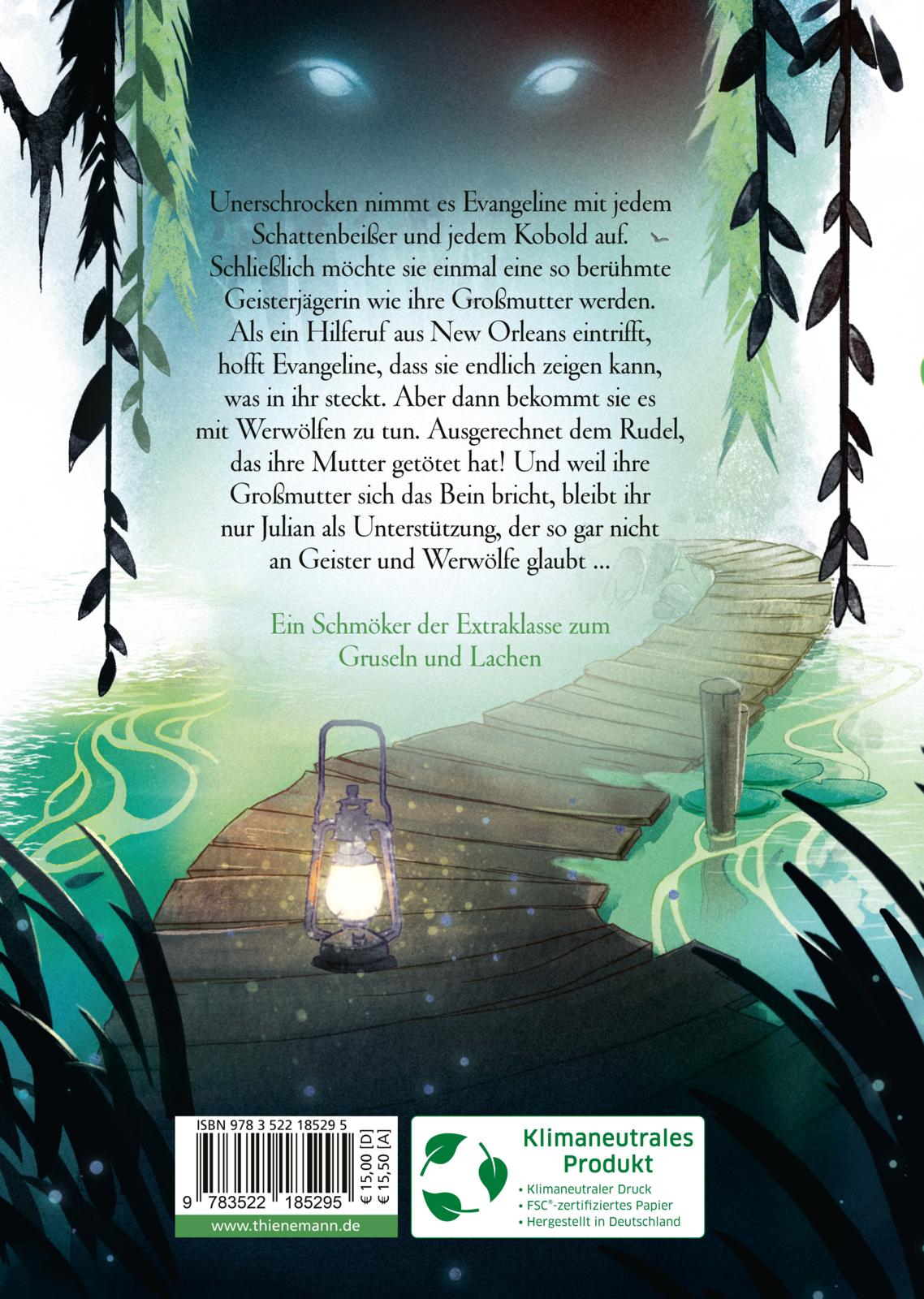 Evangeline ist nichts wichtiger, als selbst einmal eine so angesehene Geisterjägerin wie ihre Großmutter zu werden. Dafür nimmt sie es mit jedem Schattenbeißer auf! Als ein Hilferuf aus New Orleans eintrifft, hofft Evangeline, dass sie endlich zeigen kann, was in ihr steckt. Aber dann bekommt sie es mit einem Werwolf zu tun. Ausgerechnet dem Werwolf, der ihre Mutter getötet hat! Und weil ihre Großmutter sich das Bein bricht, bleibt ihr lediglich Julian als Unterstützung, der so gar nicht an Geister und Werwölfe glaubt ...