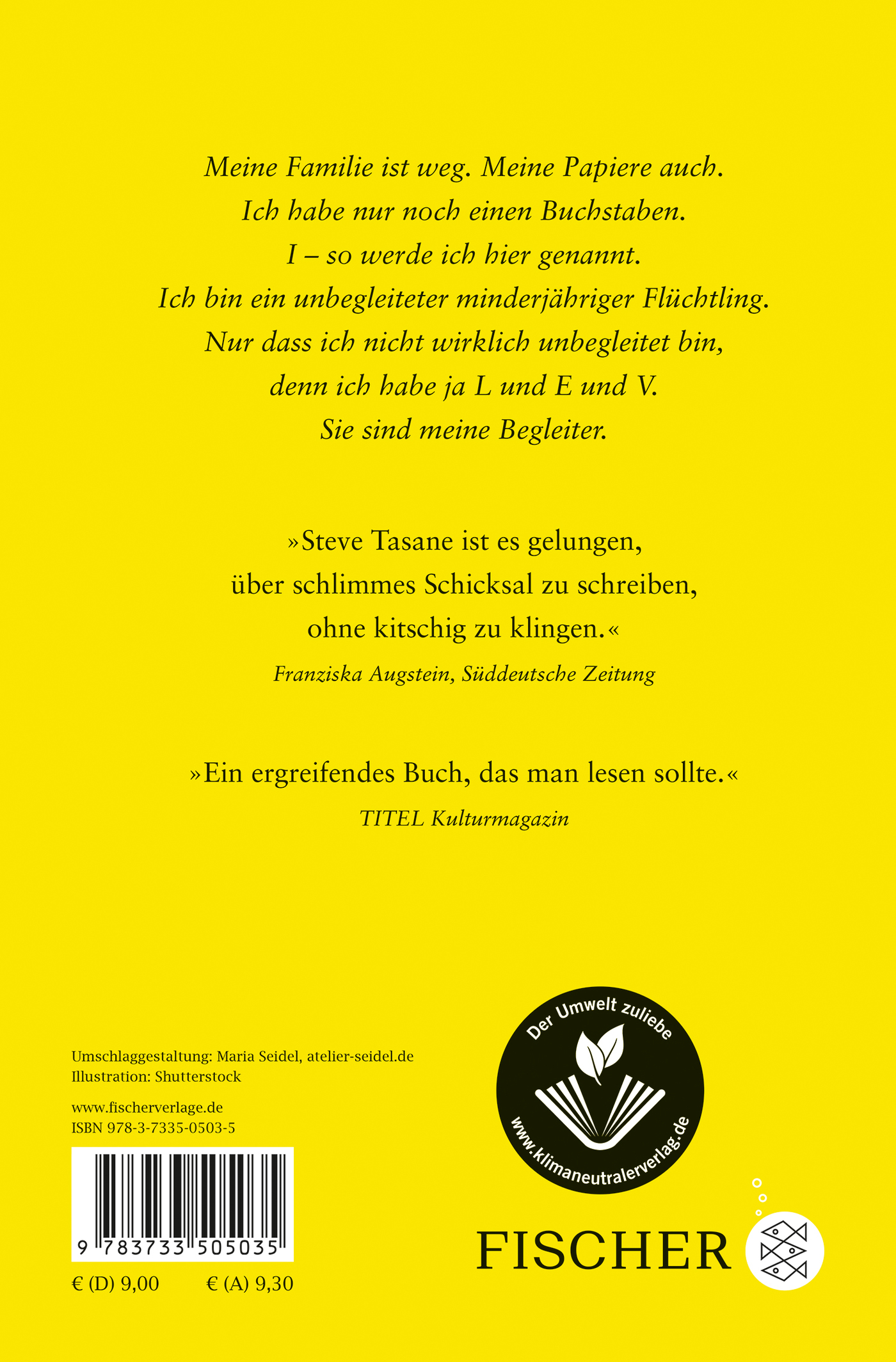 »Meine Familie ist weg. Meine Papiere auch. Ich habe nur noch einen Buchstaben. I - so werde ich hier genannt. Ich bin ein unbegleiteter minderjähriger Flüchtling. Nur dass ich nicht wirklich unbegleitet bin, denn ich habe ja L und E und V. Sie sind meine Begleiter.«