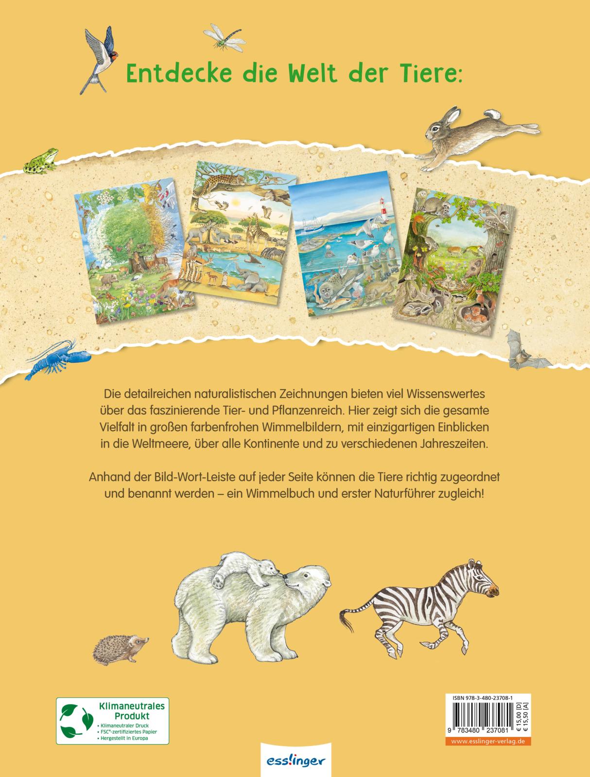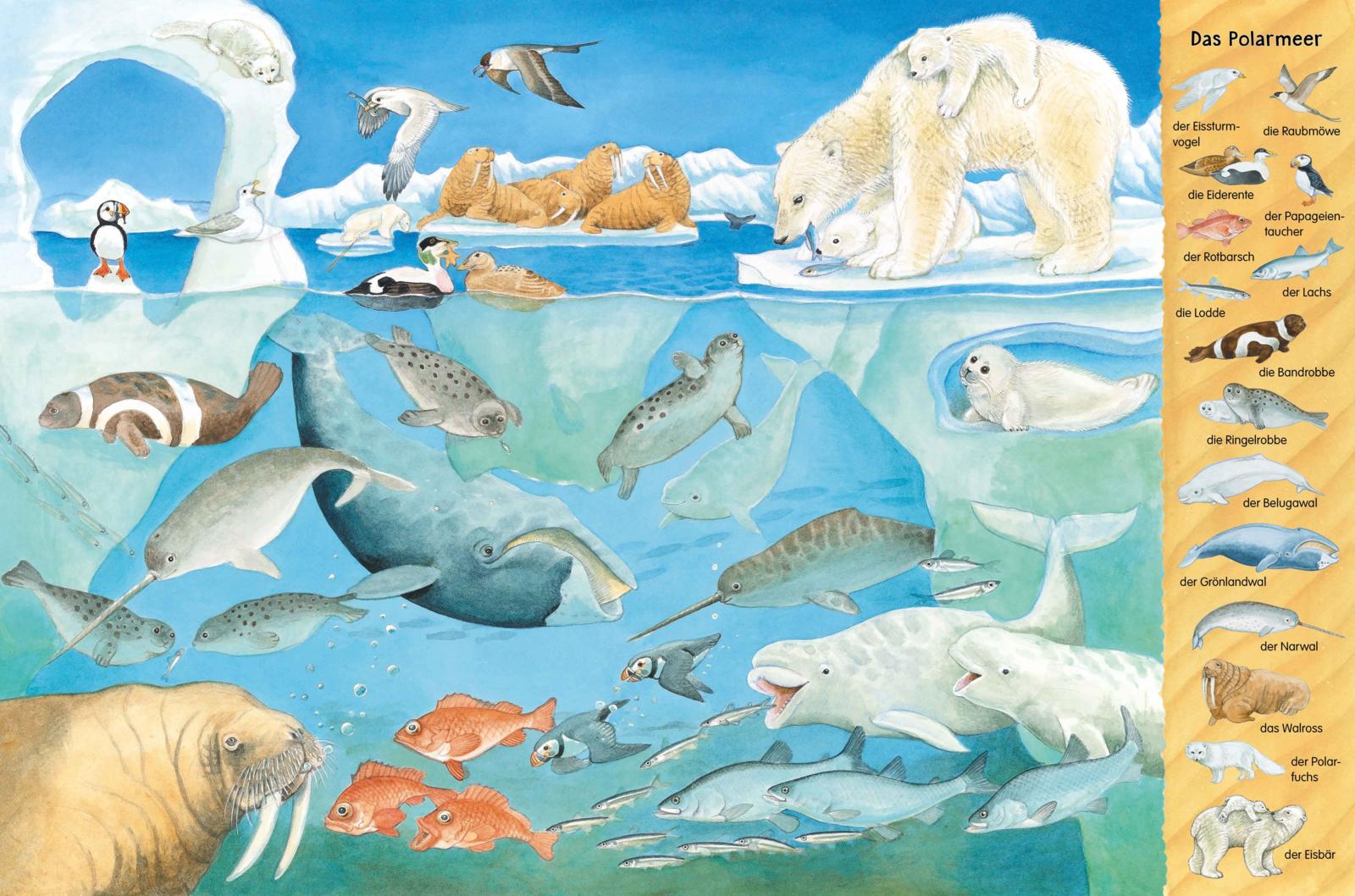 Die detailreichen naturalistischen Zeichnungen bieten viel Wissenswertes über das faszinierende Tier- und Pflanzenreich. Hier zeigt sich die gesamte Vielfalt, mit einzigartigen Einblicken in die Weltmeere, über alle Kontinente und zu verschiedenen Jahreszeiten. Dabei begegnen die Kinder ihren Lieblingstieren wie Löwe, Zebra und Elefant, aber auch zahlreichen heimischen Tieren und Tierbabys wie das Einhörnchen oder Reh.