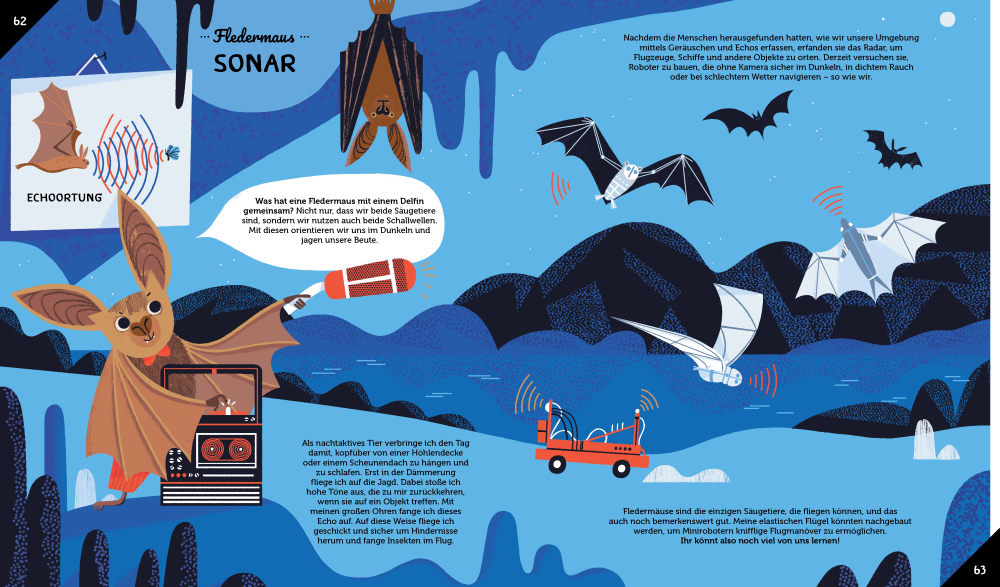 Schon oft haben Wissenschaftler versucht, ein Problem zu lösen oder etwas Neues zu entwickeln und stellen dann fest, dass schlaue Tiere es schon für sie erfunden haben. 30 Tiere stellen sich in diesem bunt illustrierten Sachbuch vor und zeigen uns, auf welche Erfindungen sie die Menschheit durch ihre spektakulären Eigenschaften gebracht haben. Seit Millionen von Jahren haben die Tiere immer neue Wege gefunden, unglaubliche Materialien herzustellen, sich fortzubewegen oder auf geschickte Art und Weise zu überleben. Manchmal, wenn menschliche Wissenschaftler nicht weiterkommen, wenden Sie sich daher um Hilfe an das Tierreich und schauen in der Bionik Tricks von den Tieren ab.
