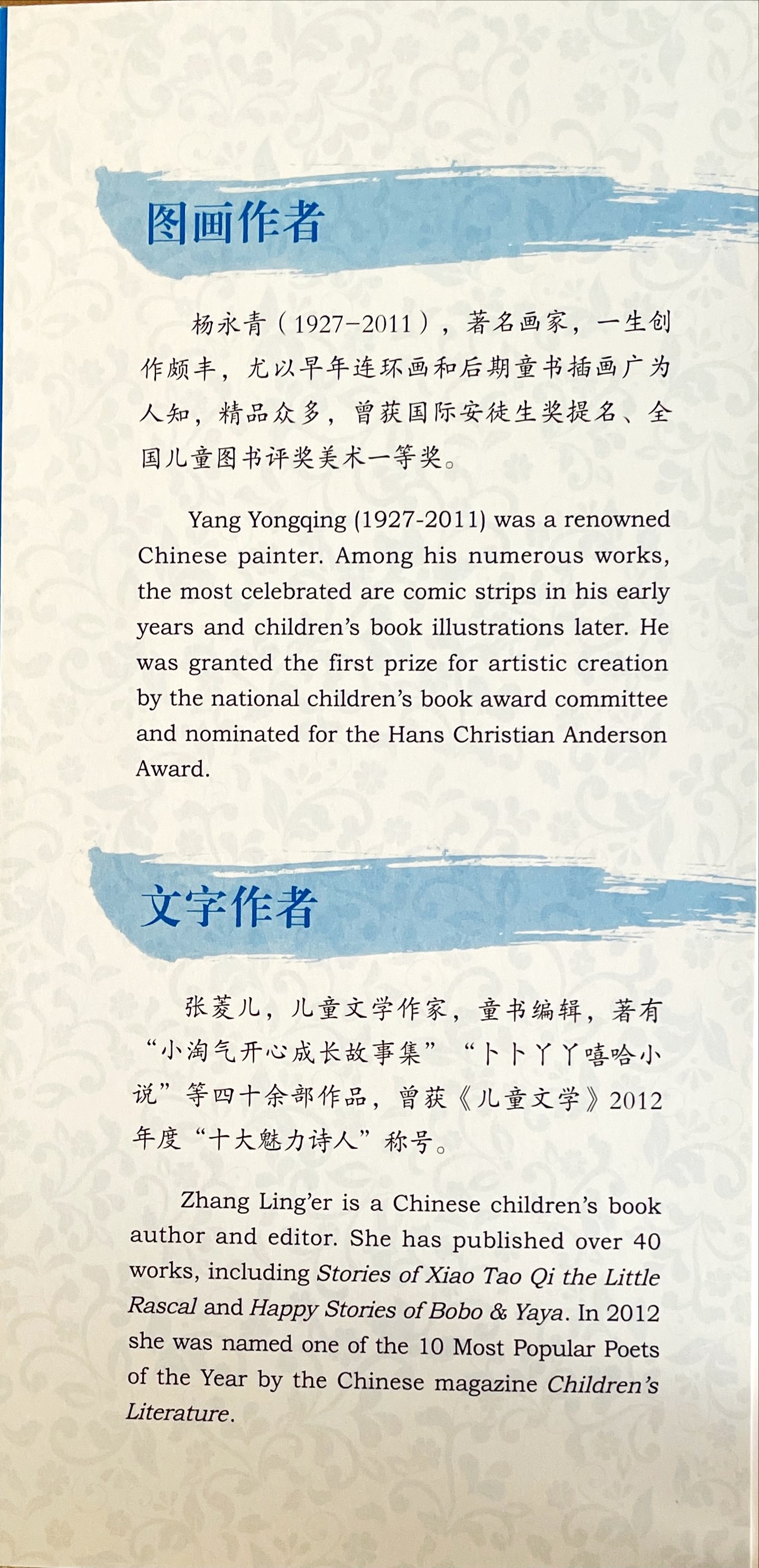 Illustrator Yang Yongqing is famous illustrator and had won lots of prizes.