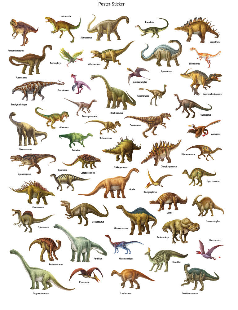 | Zusatzinfo | Durchgehend vierfarbig; über 300 Dino-Stickern verteilt auf 4 Bögen, davon 70 Leucht-Sticker zum Aufkleben auf Weltkarte ( Abmessungen Poster: ca. 54,5 x 79 cm; gefaltet: ca. 20 x 27,5 cm) |