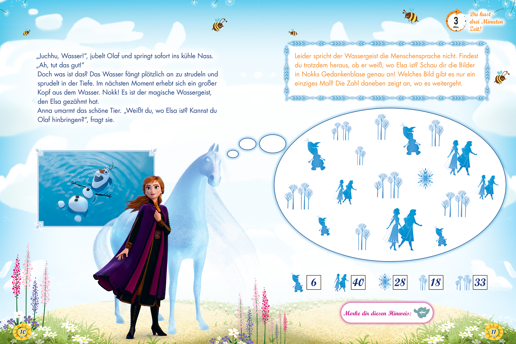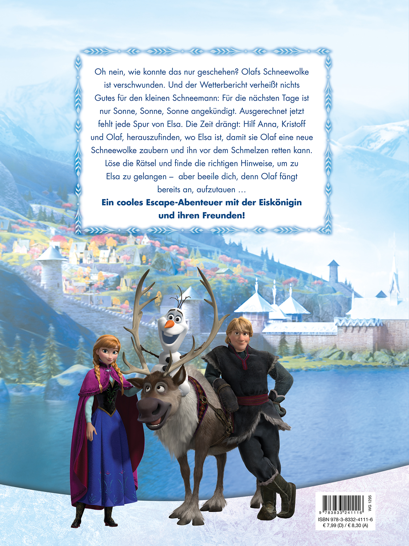 Oh nein, wie konnte das nur geschehen? Olafs Schneewolke ist verschwunden. Und der Wetterbericht verheißt nichts Gutes für den kleinen Schneemann: Für die nächsten Tage ist nur Sonne, Sonne, Sonne angekündigt. Ausgerechnet jetzt fehlt jede Spur von Elsa. Die Zeit drängt: Hilf Anna, Kristoff und Olaf herauszufinden, wo Elsa ist, damit sie Olaf eine neue Schneewolke zaubern und ihn vor dem Schmelzen retten kann. Löse die Rätsel und finde die richtigen Hinweise, um zu Elsa zu gelangen - aber beeile dich, denn Olaf fängt bereits an, aufzutauen...Ein cooles Escape-Abenteuer mit der Eiskönigin und ihren Freunden!