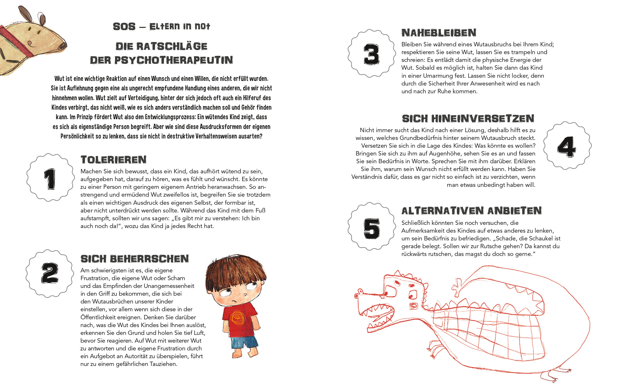 Tim, der zentrale Protagonist des Buches, schlägt fünf kreative Lösungen vor, die jedes Kind ausprobieren kann, wenn es wütend ist. Das Buch richtet sich als SOS-Elterncoach außerdem auch an die Eltern. Sie finden Anregungen von Dr. Chiara Piroddi, einer auf kognitive Evolution spezialisierten Psychologin und Psychotherapeutin. Die Expertin Dr. Piroddi bietet fünf einfache, klar erläuterte Vorschläge für die Eltern an, wie sie ihren Kindern helfen, Ärger zu kontrollieren und gleichzeitig Gefühle auszudrücken.