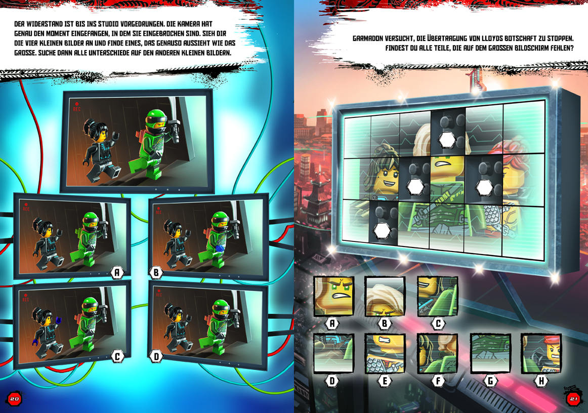Rätselabenteuer in Ninjago City- mit LEGO® Minifigur "Lloyd" und Accessoires Die mutigen Ninja Lloyd, Cole, Kai, Jay, Zane und Nya müssen Ninjago City wieder einmal vor Bösewichten beschützen. Dabei brauchen sie die Unterstützung ihrer treuen Fans!Zusammen mit den Ninja gilt es, zahlreiche knifflige Rätsel zu lösen und zu verhindern, das böse Mächte die Stadt ins Chaos stürzen. Denn gemeinsam sind die jungen Fans und ihre Helden unschlagbar! Die detailreich handillustrierten Szenen lassen die Welt von Ninjago dabei zum Leben erwachen und versüßen den Rätselspaß. Zum ultimativen Spielspaß tragen die coole LEGO® Minifigur "Lloyd" und die enthaltenen Accessoires bei, mit denen neben Lloyd auch andere LEGO Minifiguren ausgestattet werden können. Der Rätselspaß eignet sich hervorragend für Kinder ab 6 Jahren. LEGO, the LEGO logo, the Brick and Knob configurations, the Minifigure and NINJAGO are trademarks of the LEGO Group. ©2021 The LEGO Group.Manufactured by AMEET Sp. z o.o. under license from the LEGO Group