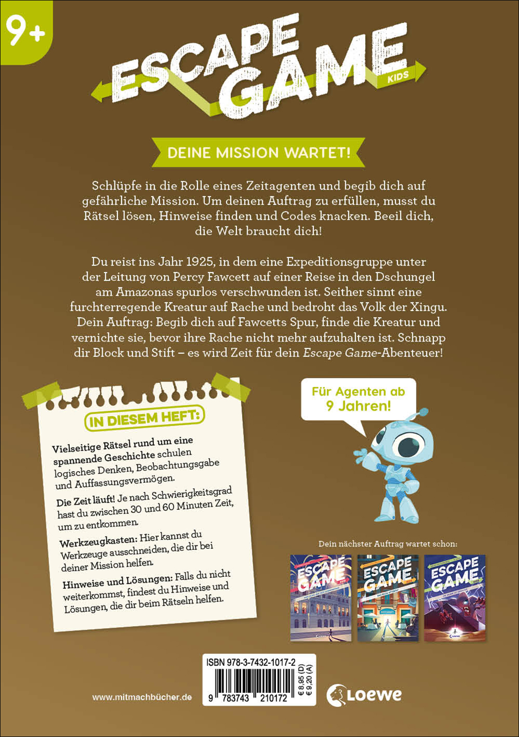 | Schlagworte | Beschäftigungsbuch Mitmachbuch • Bücher wie Mission: Exit • Bücher wie X-Scape • Escape Room Buch • Escape Spiel Buch • Gehirnjogging Gehirntraining Kinder • Geschenk für Kinder ab 9 Jahren • Kinderbeschäftigung ab 9 Jahre • Kinder zuhause beschäftigen • Mitmachbücher für Kinder ab 9 Jahre |