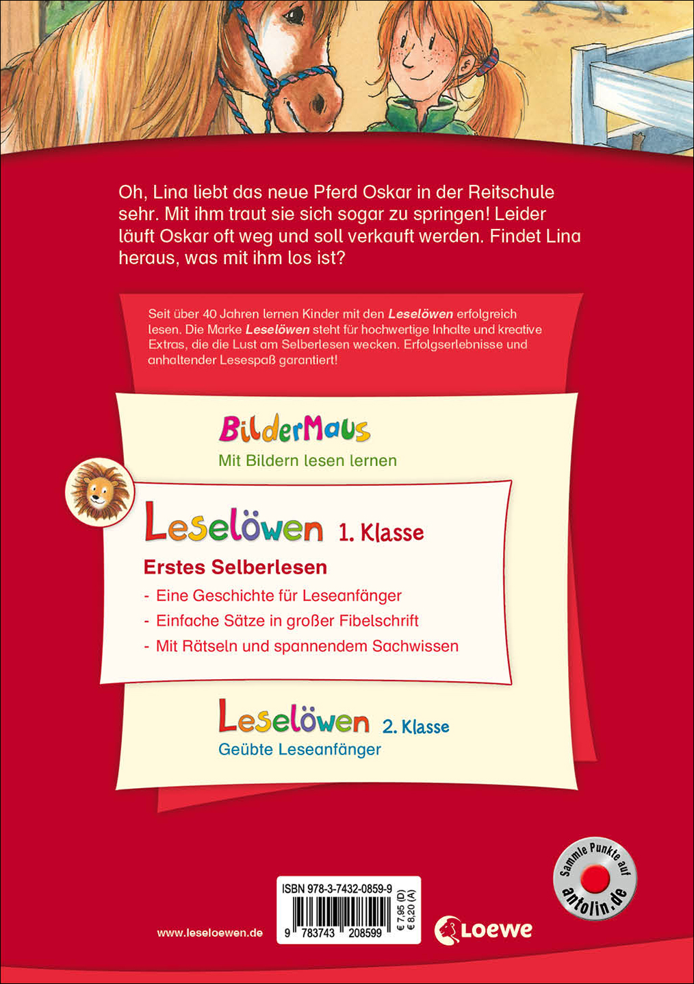 Oh, Lina liebt das neue Pferd Oskar in der Reitschule sehr. Mit ihm traut sie sich sogar zu springen! Aber leider büxt das Pferd ständig aus und soll wieder verkauft werden. Kann Lina herausfinden, was mit Oskar los ist?