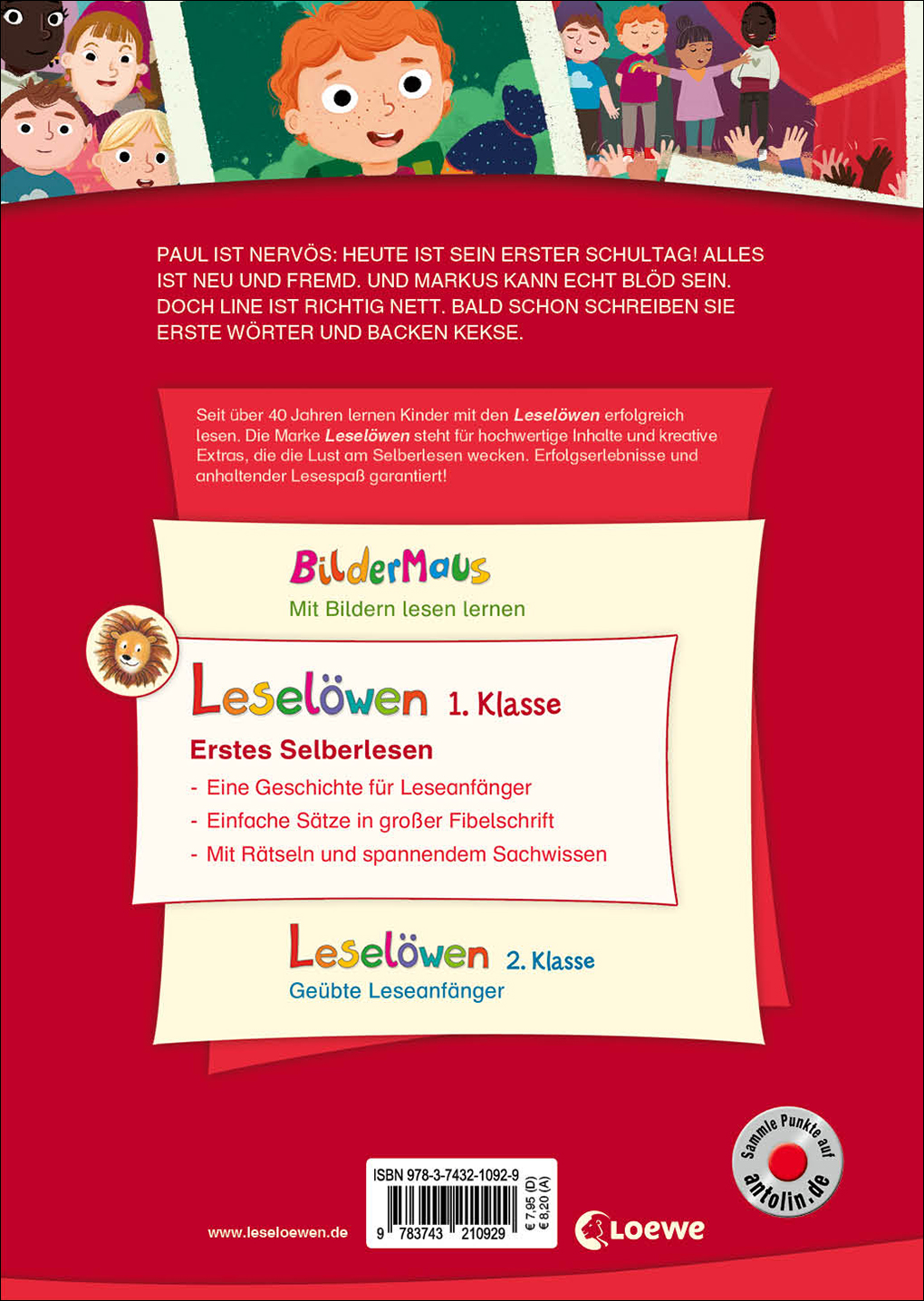 | Schlagworte | Erstes Selberlesen ab 6 Jahre • Geschenk Buch Mädchen Junge Schultüte • Kinderbücher ab 6 Jahre • Kinderbuch erster Schultag erste Klasse ab 6 Jahre • Leselöwen Erstlesergeschichten • Lesen lernen ab 6 Jahre • Lesen lernen Erstklässler • Lesen lernen Grundschule 1. Klasse • Schulanfang Schulstart Schulbeginn • Schulromane Grundschulgeschichten für Kinder |