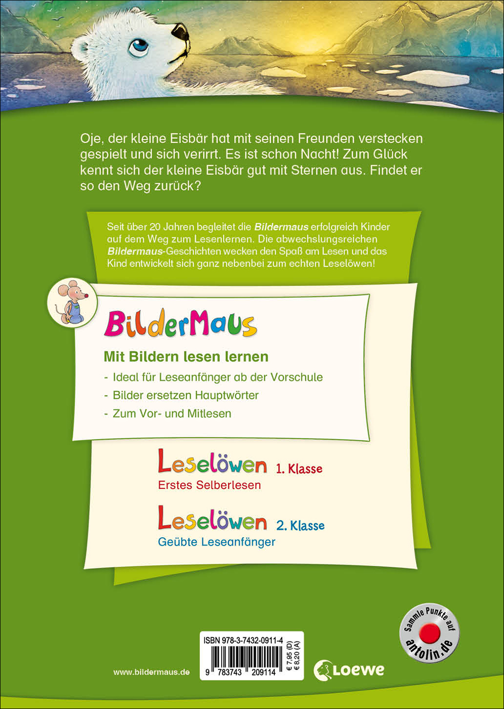| Schlagworte | Erstlesebücher Bücher für Erstleser Leseanfänger • Geschenk für Vorschulkind • Kinderbücher ab 5 fünf Jahre Jährige • Lesen lernen mit Bilder Vignetten • Lesen lernen Vorschule vor der 1 Klasse Schule • Lesetraining Lesen üben • Schulanfang Schulstart Schulbeginn • Tiergeschichten Fabeln Eisbären • Vorlesebuch ab 5 fünf Jahre • Vorschule Übungen Lesen |