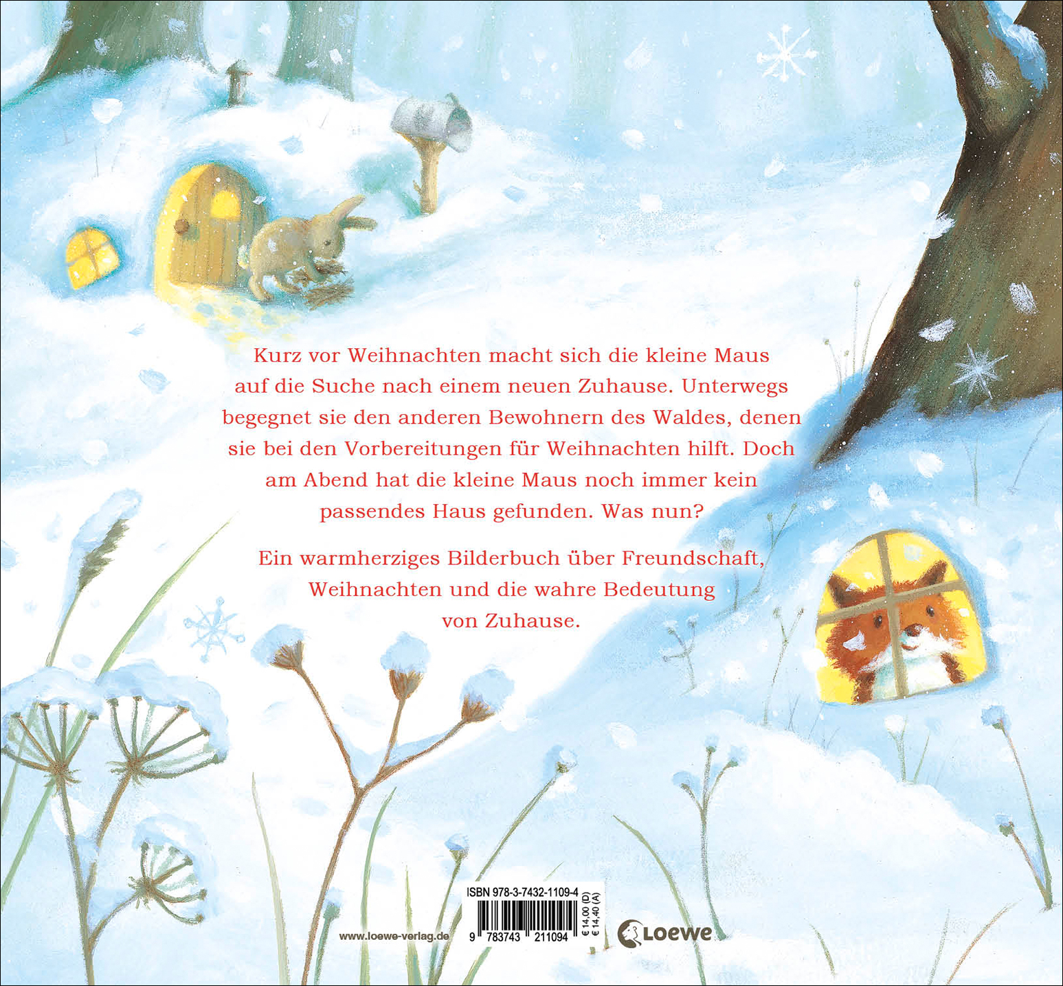 Es ist der Abend vor Weihnachten und die kleine Maus ist auf der Suche nach einem neuen Zuhause. Unterwegs begegnet sie dem Hasen, dem Fuchs und dem Bären und hilft ihren neuen Freunden bei den Weihnachtsvorbereitungen. Doch dann wird es langsam spät und die kleine Maus hat noch immer kein passendes Haus gefunden. Ob sie es noch rechtzeitig bis Weihnachten schaffen kann?