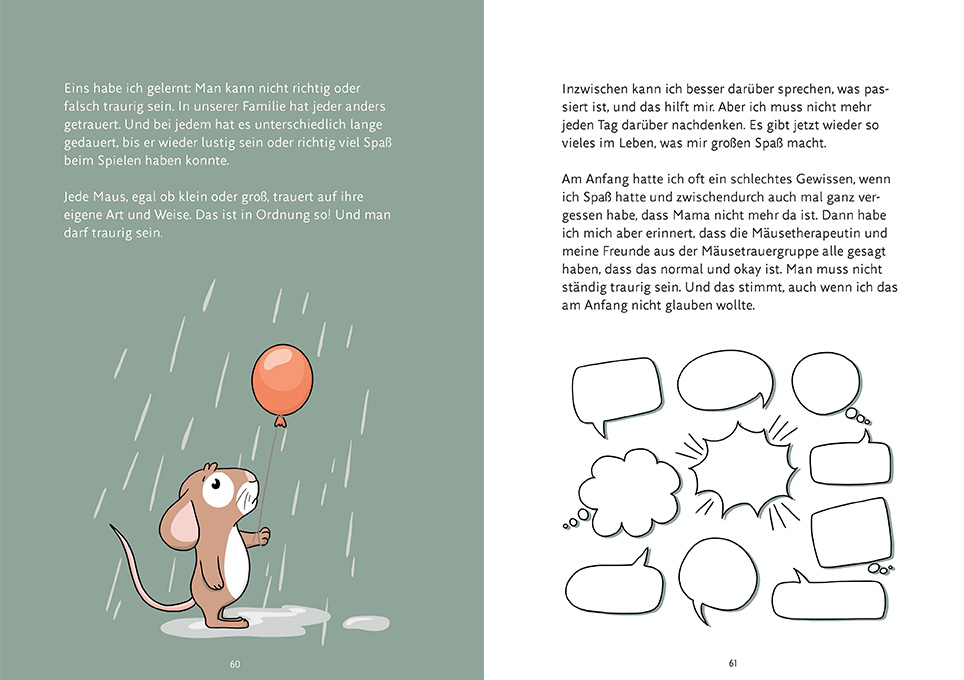 Dieses Kinderfachbuch widmet sich ohne Tabuisierung dem Thema Suizid in der Familie. Im Fachteil für Kinder berichtet eines der Mäusekinder, wie es den Verlust erlebt hat und wie die Familie ihren Weg zurück ins Leben gefunden hat. Melanie Gräßer, Kinder- und Jugendlichen-Psychotherapeutin, wendet sich abschließend an die Bezugspersonen betroffener Kinder und beleuchtet alle wichtigen Aspekte, die mit dieser Todesursache zusammenhängen: Schuldgefühle der Angehörigen, den Abschiedsbrief, fehlendes Abschiednehmen. Außerdem gibt sie Beispiele für kindgerechte Antwortmöglichkeiten auf Fragen zu den Todesumständen.