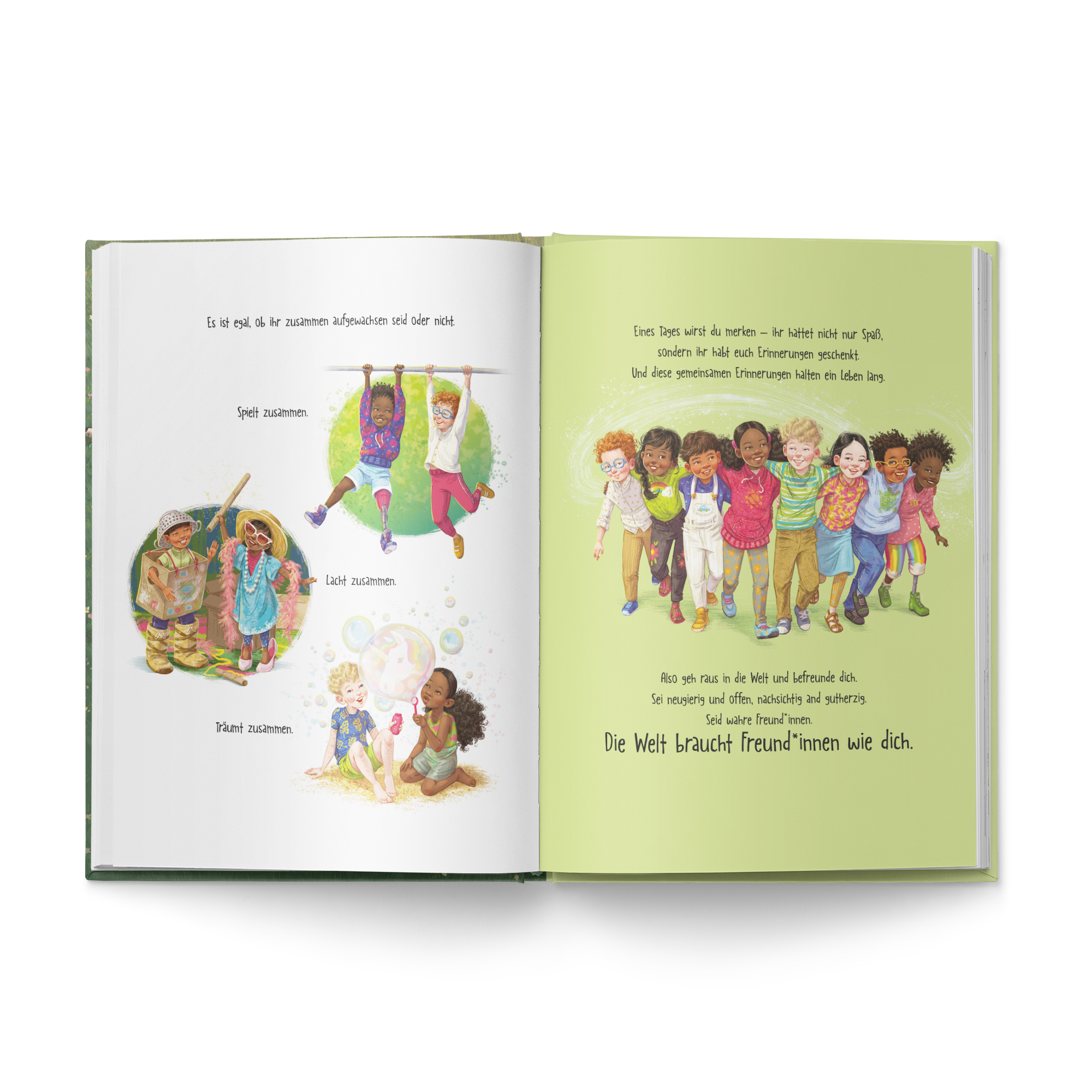 Mit seiner motivierenden Botschaft fördert das Bilderbuch "Ein*e Freund*in wie du" Mut, Empathie und Selbstlosigkeit. Denn die Welt braucht starke Kinder mit sozialen Kompetenzen und echten Freund*innen!