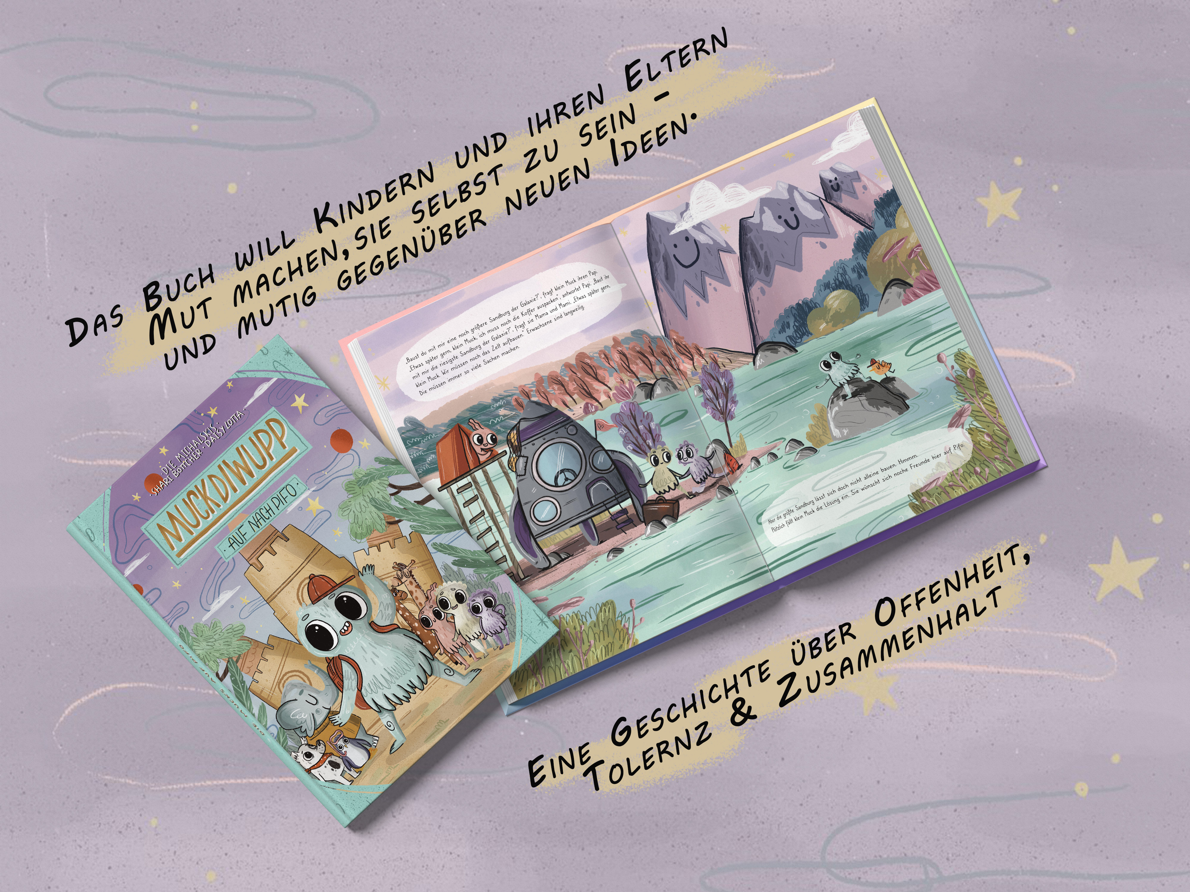 “Muckdiwupp – Auf nach Pifo” ist eine Geschichte über Offenheit, Toleranz und Zusammenhalt. Das Buch will Kindern und ihren Eltern Mut machen, sie selbst zu sein – und offen für neue Ideen. Wir begeben uns mit Muckelino, einer selbstbewussten, neugierigen Identifikationsfigur, auf die Reise in eine Welt vielfältiger Familienmodelle. Mit genderneutralen Illustrationen liegt der Schwerpunkt auf Diversität, dem gemeinsamen Anders-Sein und der Repräsentation unterschiedlichster, bunter Lebensstile.