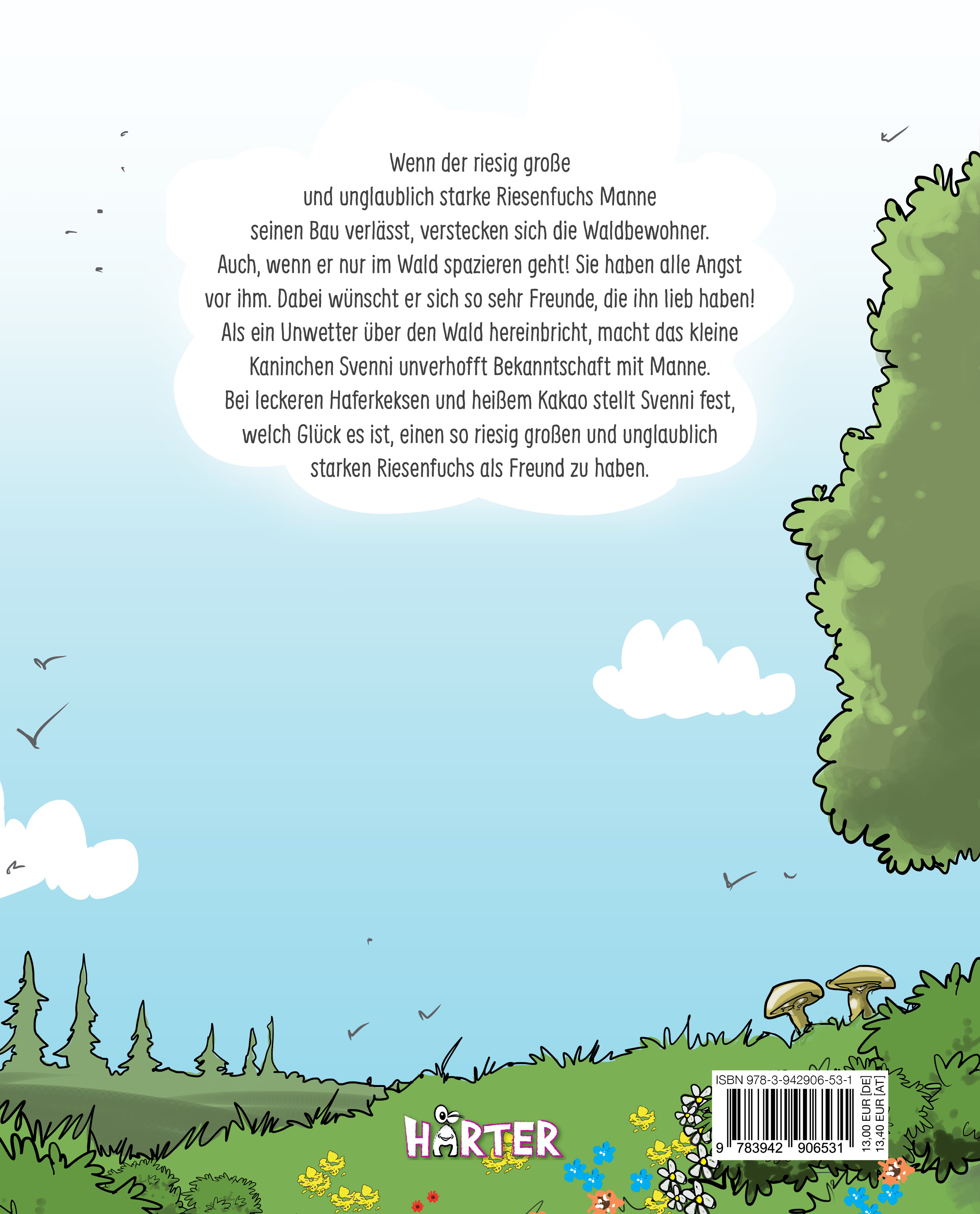 Als ein Unwetter über den Wald hereinbricht, macht das kleine Kaninchen Svenni unverhofft Bekanntschaft mit Manne. Bei leckeren Haferkeksen und heißem Kakao stellt Svenni fest, welch Glück es ist, einen so riesig großen und unglaublich starken Riesenfuchs als Freund zu haben.