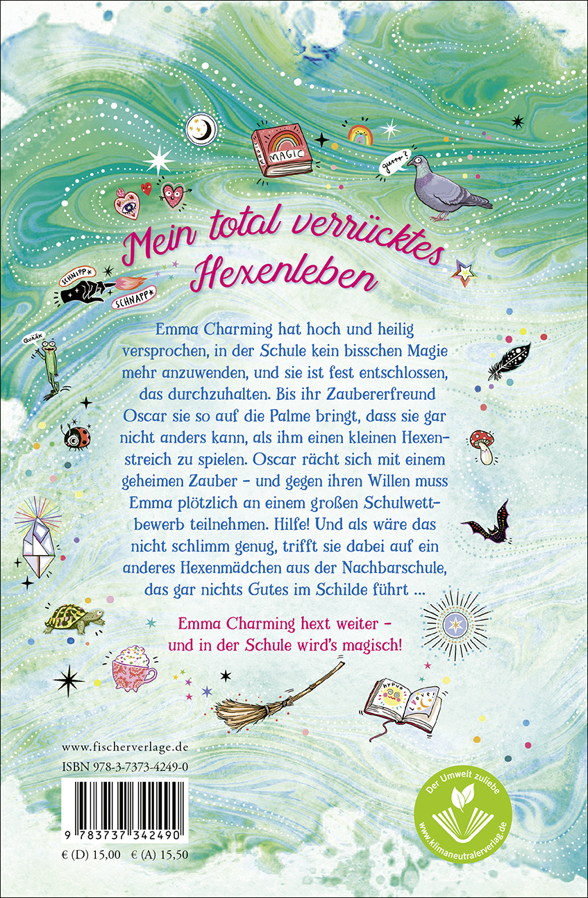 Emma Charming hat hoch und heilig versprochen, in der Schule kein bisschen Magie mehr anzuwenden, und sie ist fest entschlossen, das durchzuhalten. Bis ihr Zaubererfreund Oscar sie so auf die Palme bringt, dass sie gar nicht anders kann, als ihm einen kleinen Hexenstreich zu spielen. Oscar rächt sich mit einem geheimen Zauber – und gegen ihren Willen muss Emma plötzlich an einem großen Schulwettbewerb teilnehmen. Hilfe! Und wäre das nicht schlimm genug, trifft sie dabei auf ein anderes Hexenmädchen aus der Nachbarschule, die gar nichts Gutes im Schilde führt …