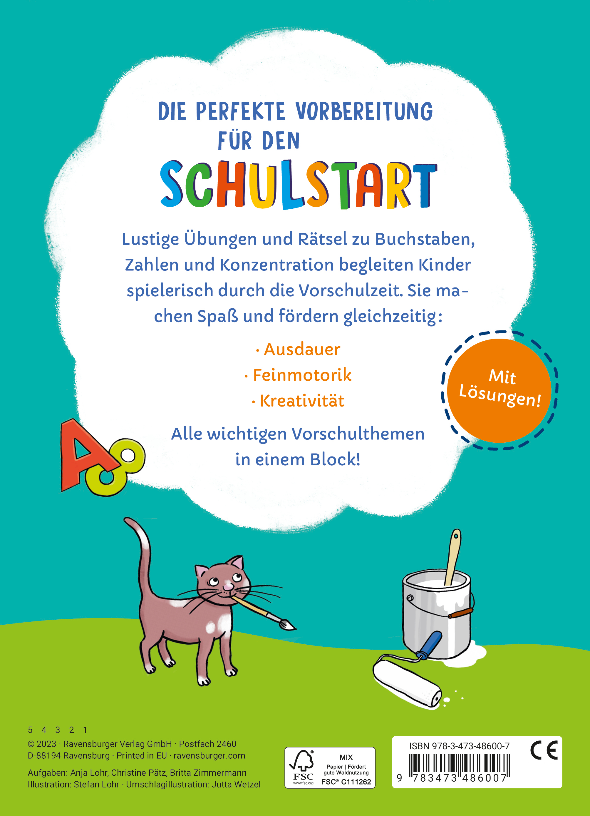 Ravensburger Mein Vorschul-Block - Zahlen, Buchstaben, Konzentration - Rätselspaß für Vorschulkinder ab 5 Jahren - Vorbereitung auf Schule